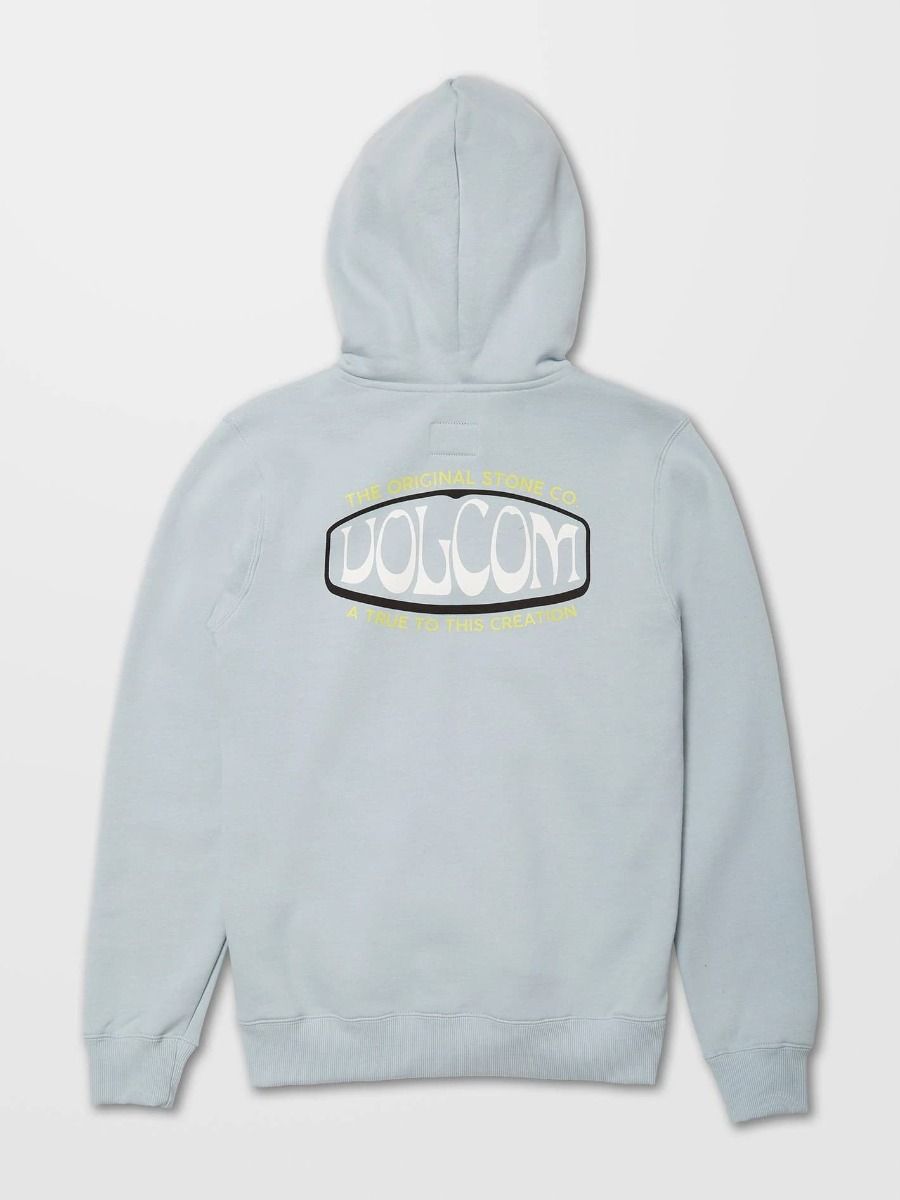 Esta Zip Hoodie de corte clásico cuenta con forro polar, bolsillo canguro, embellecedores metálicos, cierre frontal de cremallera y estampados Volcom en el pecho y la espalda.