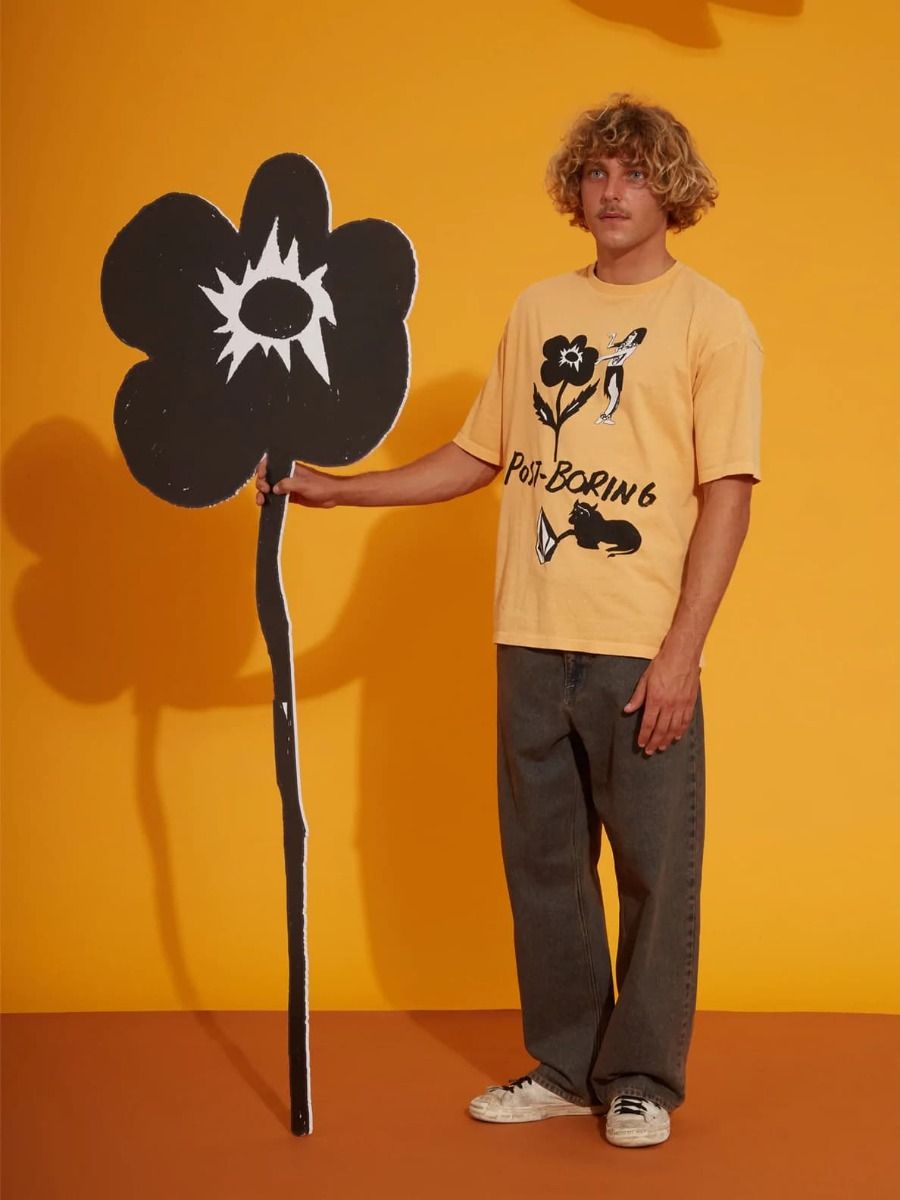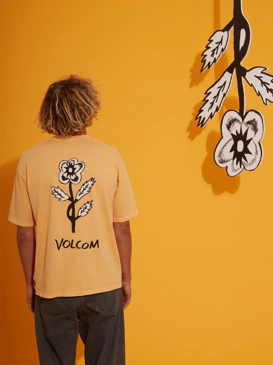 Camiseta orgánica de manga corta Volcom Bob Mollema 1 en color amarillo para hombre
