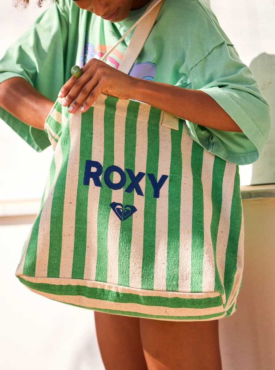 Prepárate para disfrutar del sol y la playa con la Bolsa Fairy Tote Bag en vibrante tono verde con estampado a rayas (Zephyr Green) de Roxy. Esta práctica tote bag de la Colección Eco Conscious es el accesorio perfecto para tus días de relax bajo el sol.