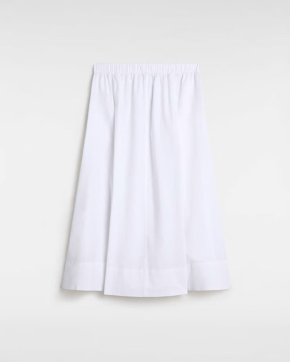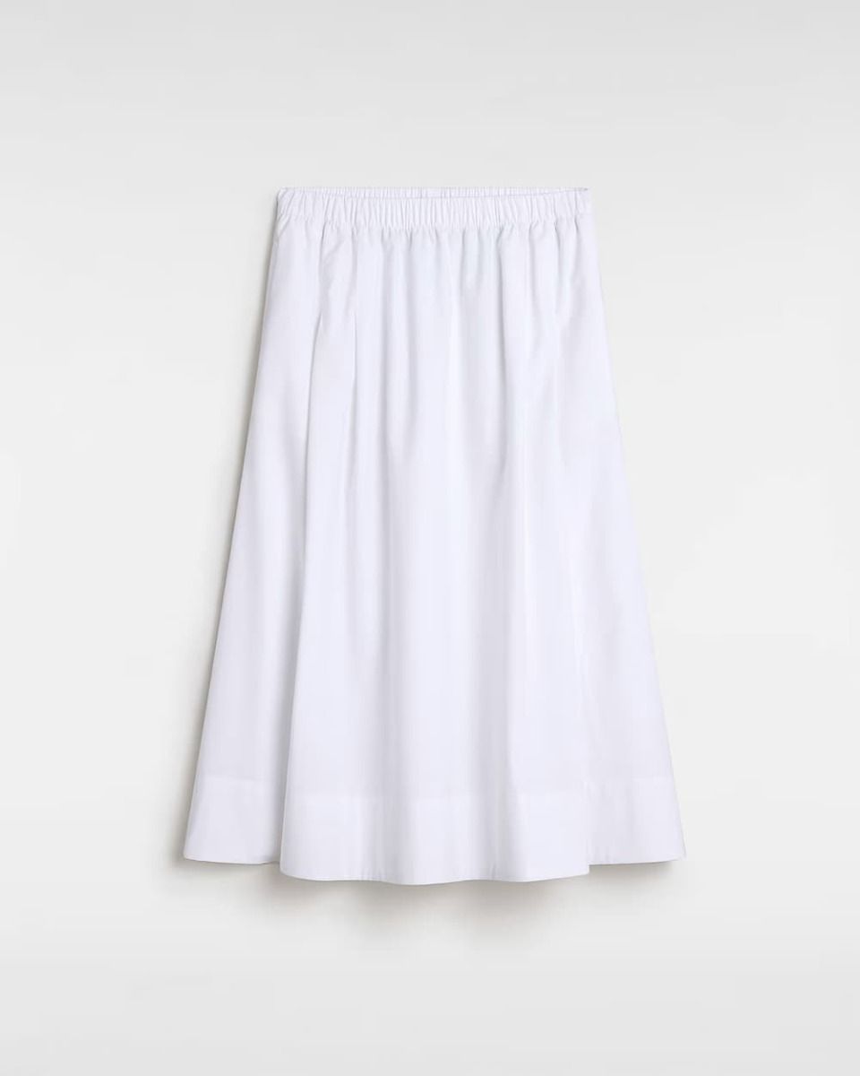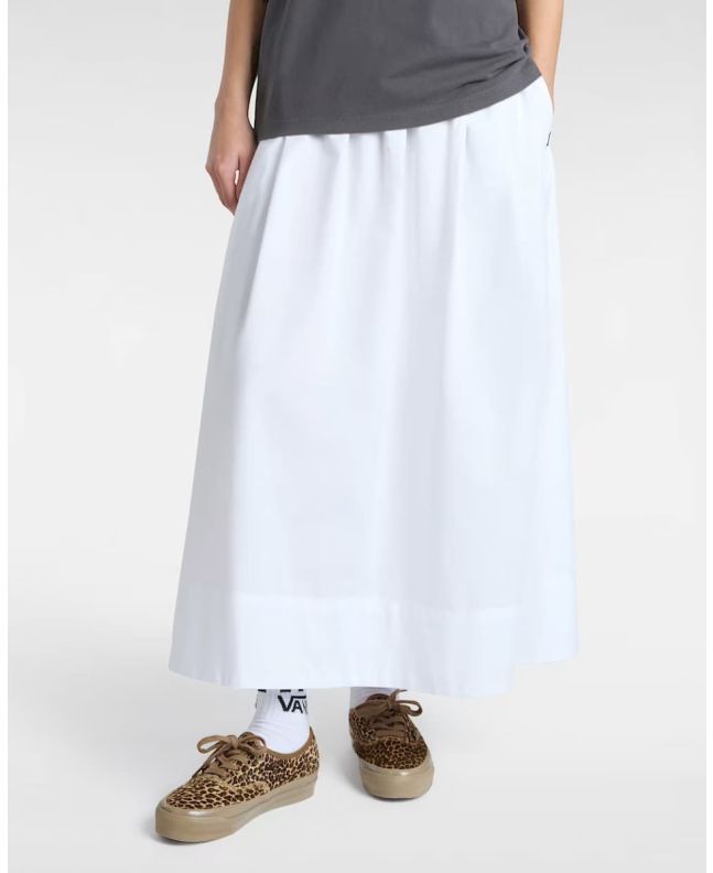 Falda larga Vans Francesca Full Skirt blanca para mujer, corte voluminoso en popelina de algodón con cintura elástica y aberturas laterales.
