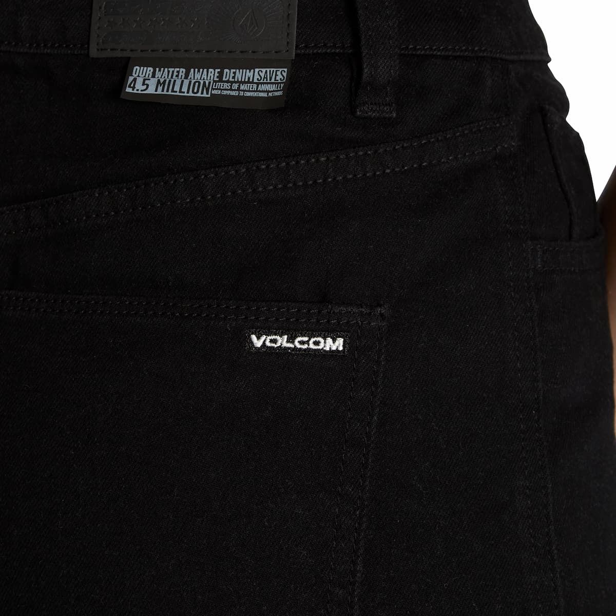 La falda vaquera Weellow Denim negra para mujer tiene una etiqueta de garantía Volcom en el interior.