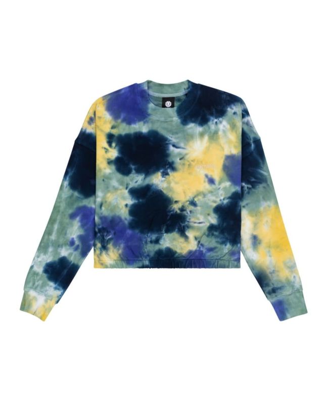 La sudadera sin capucha para mujer Ferring multicolor con estampado Tie Dye (Dark Magma) de Element ha sido confeccionada con 100% tejido Terry de algodón teñido con pigmentos (350g / m2).