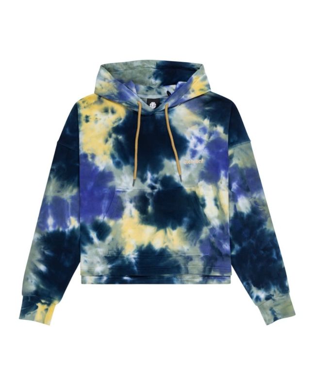 La sudadera con capucha para mujer Ferring Po multicolor con estampado Tie Dye (Dark Magma) de Element ha sido confeccionada con 100% tejido Terry de algodón teñido con pigmentos (350g / m2).