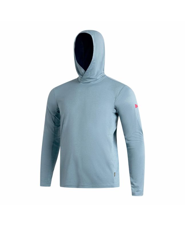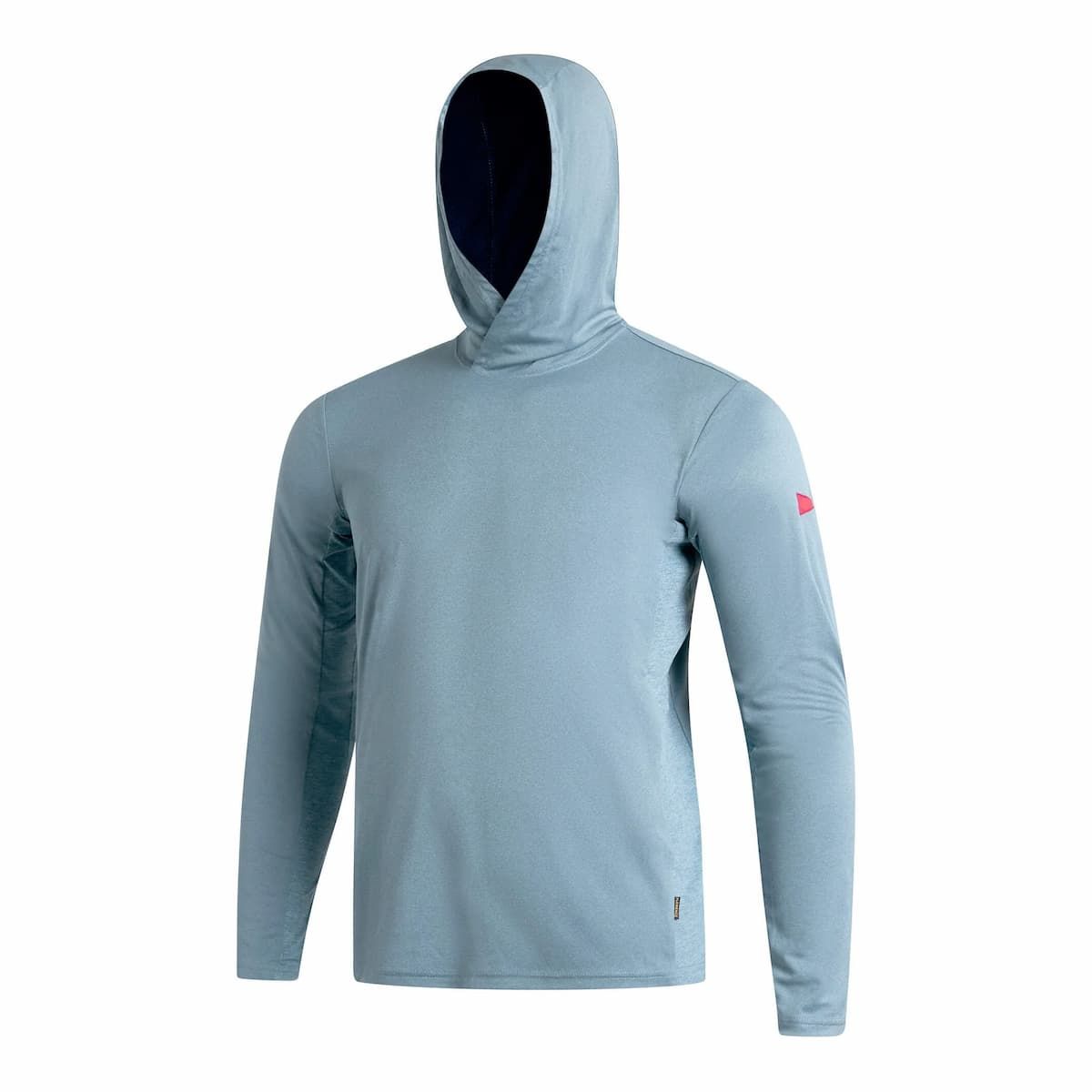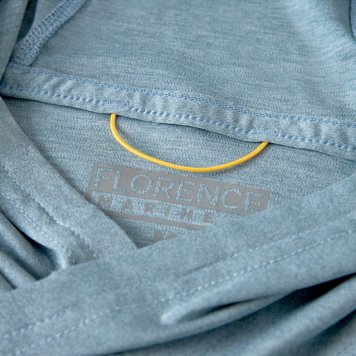 La Florence Marine X Sun Pro Long Sleeve Crossover Hooded UPF Shirt en color Heather Light Sea Blue está diseñada para ofrecer protección solar avanzada, transpirabilidad y confort en condiciones cálidas y exigentes.