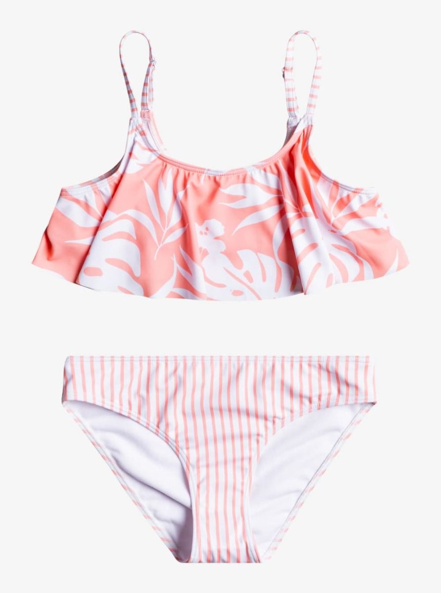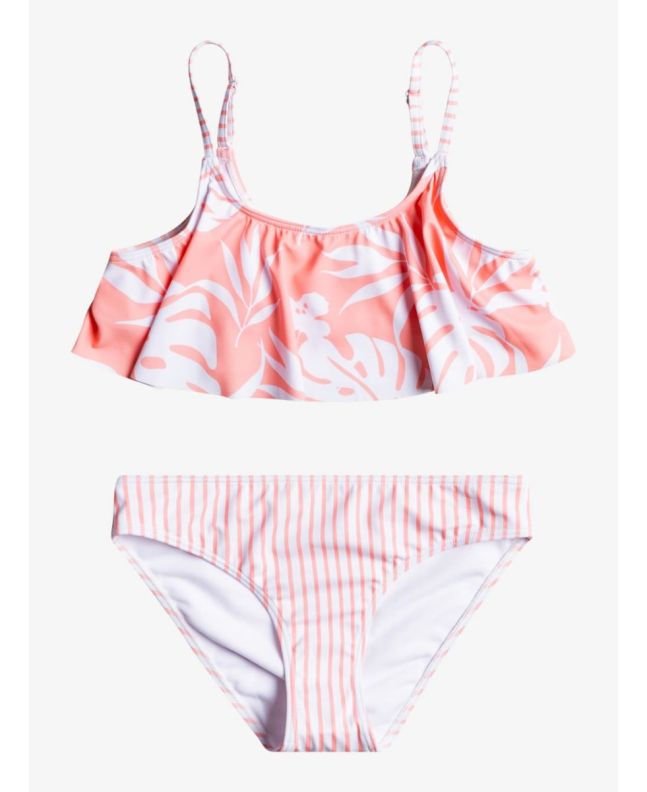 Conjunto de bikini con volantes Roxy Flowers Addict en color coral para chica (8-16 años)