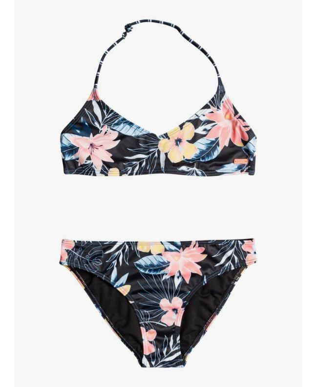 Conjunto de Bikini bralette triangular Roxy Flowers Addict en color negro con estampado floral para chica (8-16 años)
