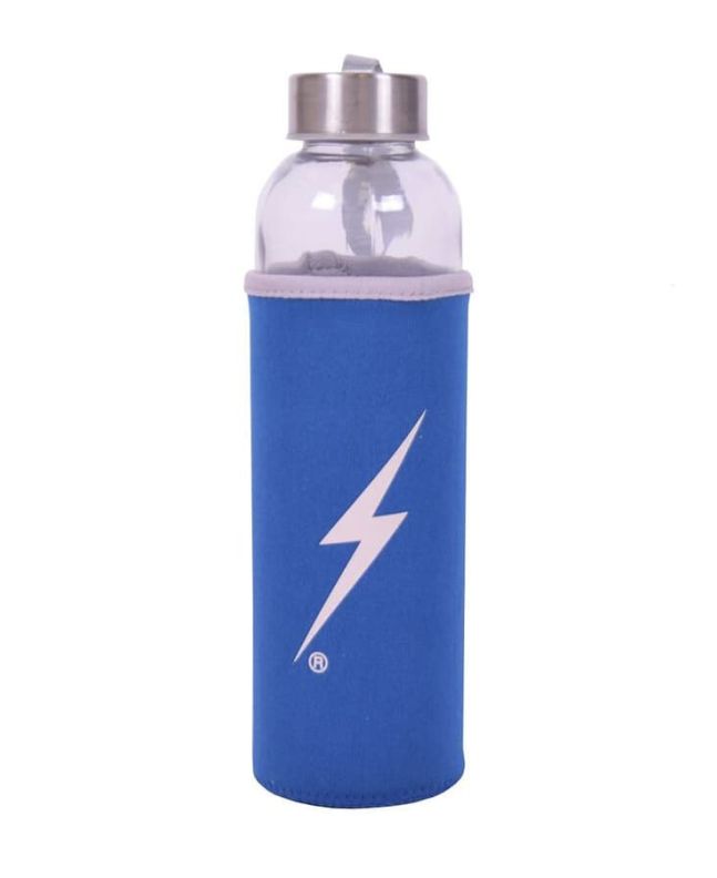 La botella de agua reutilizable Forever en azul (Blue) de Lightning Bolt está fabricada 100% con vidrio.