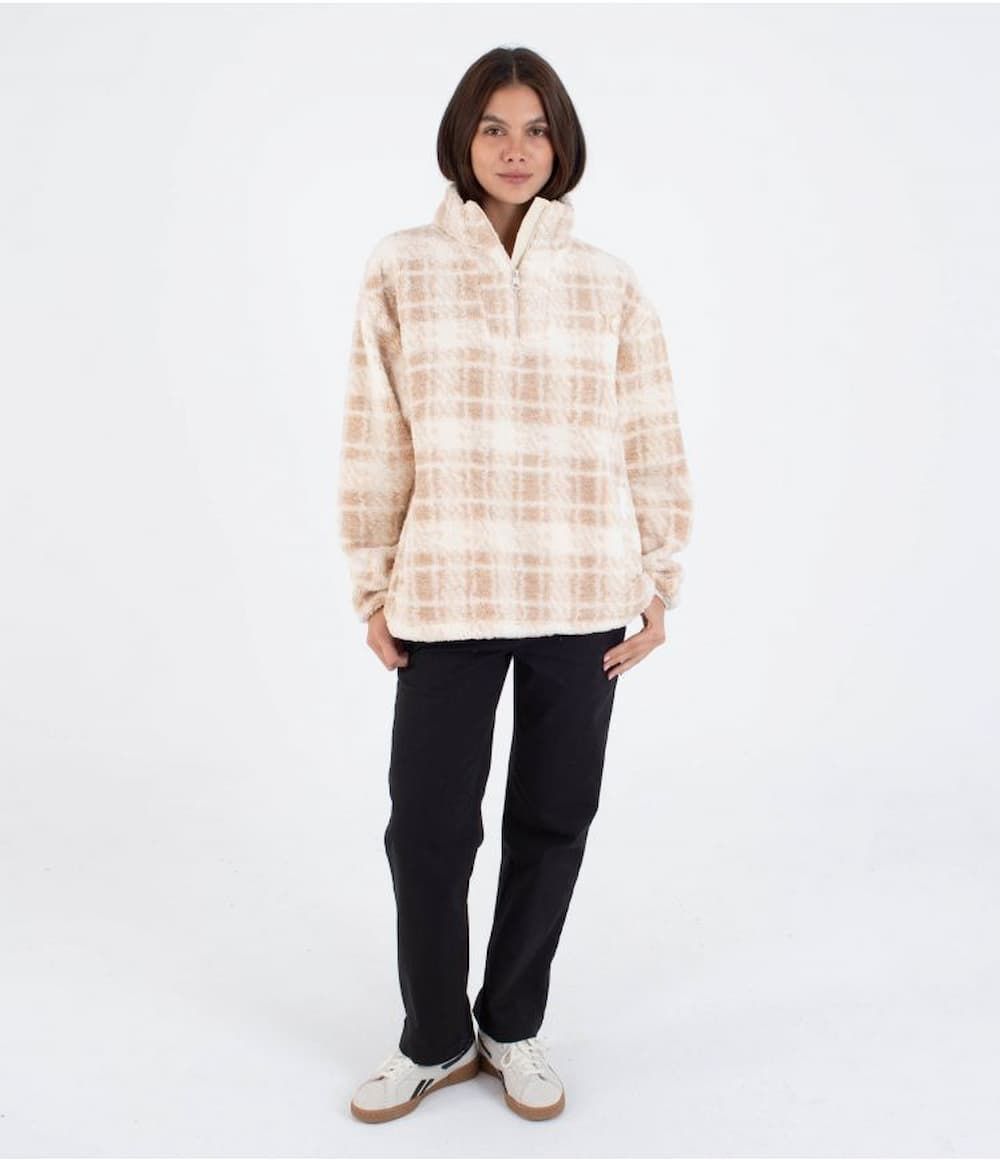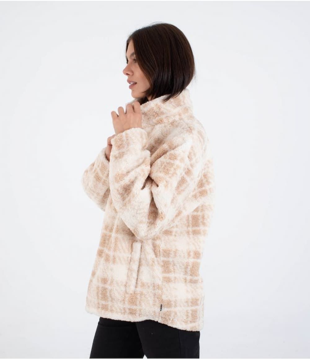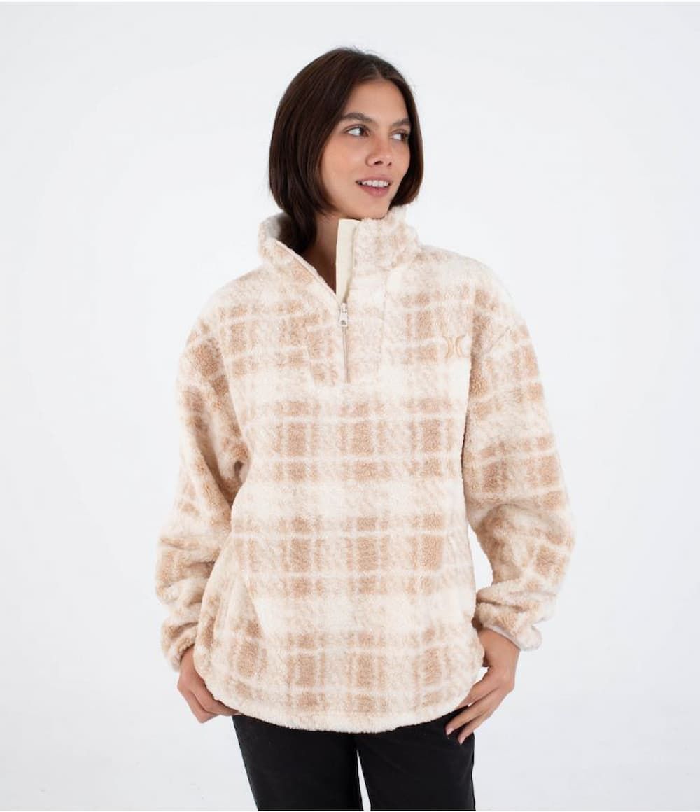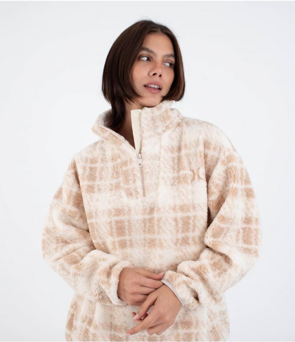 Forro polar con cremallera parcial Hurley Laneway High Pile beige para mujer