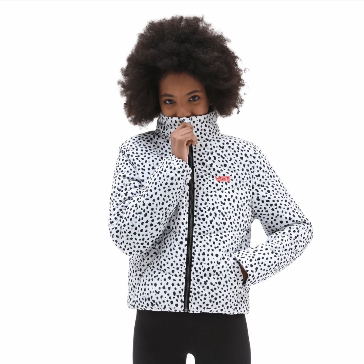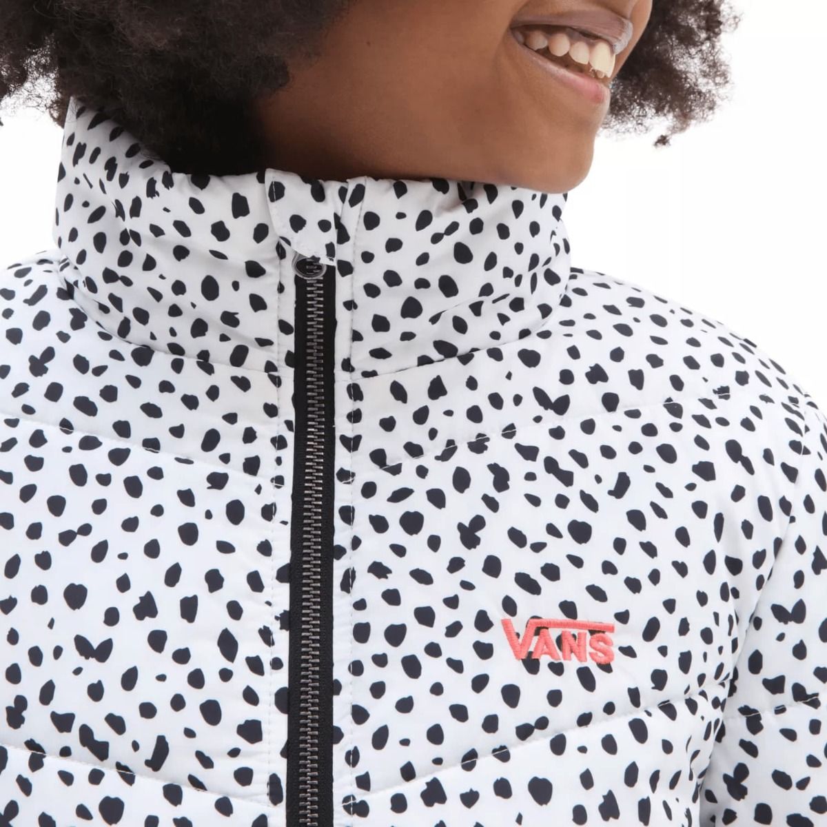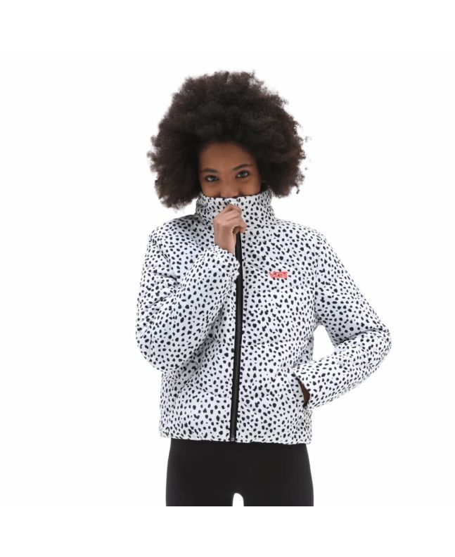 Esta chaqueta impermeable de estilo clásico cuenta con relleno DuPont™ de 200 g en la parte del tronco y de 180 g en las mangas para mayor calidez, puntadas estratégicas para ofrecerte la máxima versatilidad, cuello alto, estampando de dálmata y el logo de Vans bordado en el lado izquierdo del pecho.