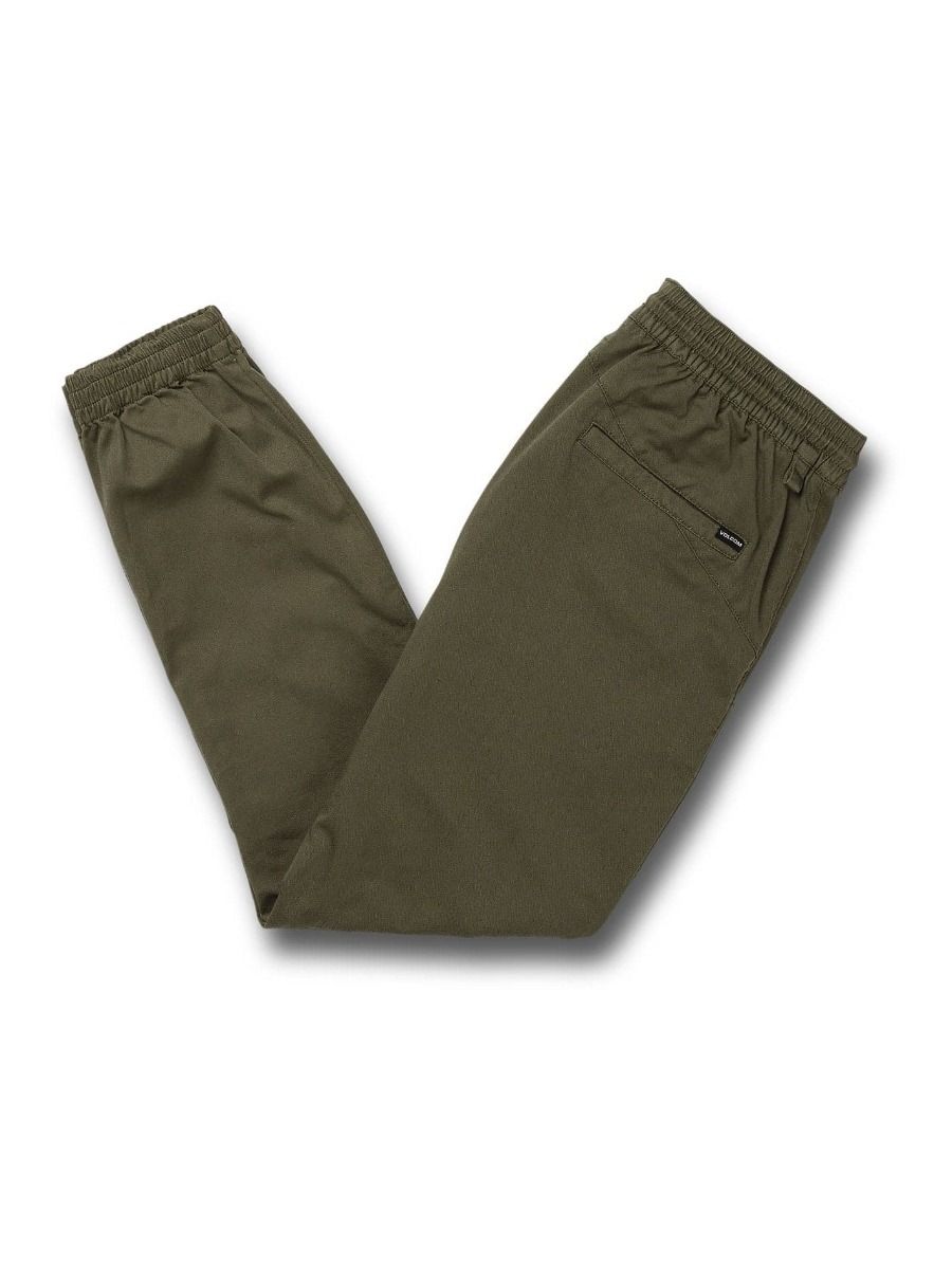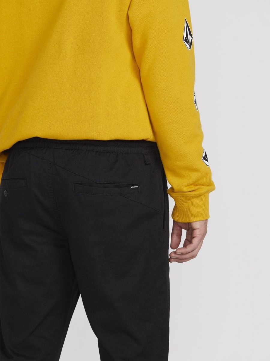 Estos pantalones jogger de tiro normal y corte tapered, cuentan con cintura elástica ajustable con cordón, bajos de las perneras elásticos con dobladillo, la característica costura trasera asimétrica de Volcom, pernera con abertura de 15" (38cm) y la icónica Volcom Stone cosida en la pierna izquierda.