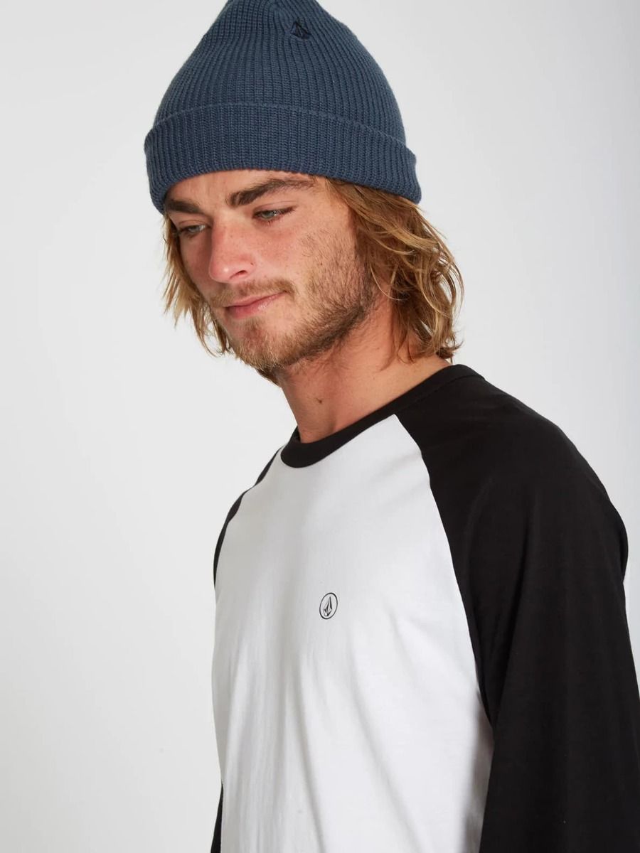 El gorro Full Stone azul para hombre tiene el sello de garantía Volcom.