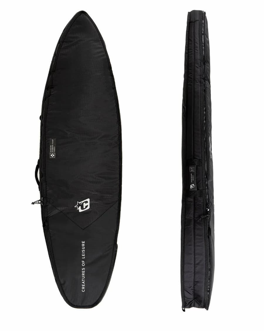 Protección reforzada y tejido técnico en una funda doble para shortboards de Creatures.