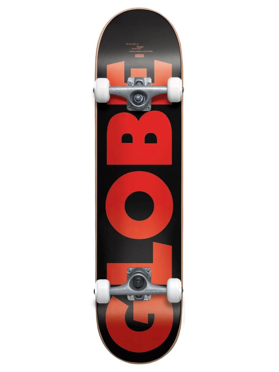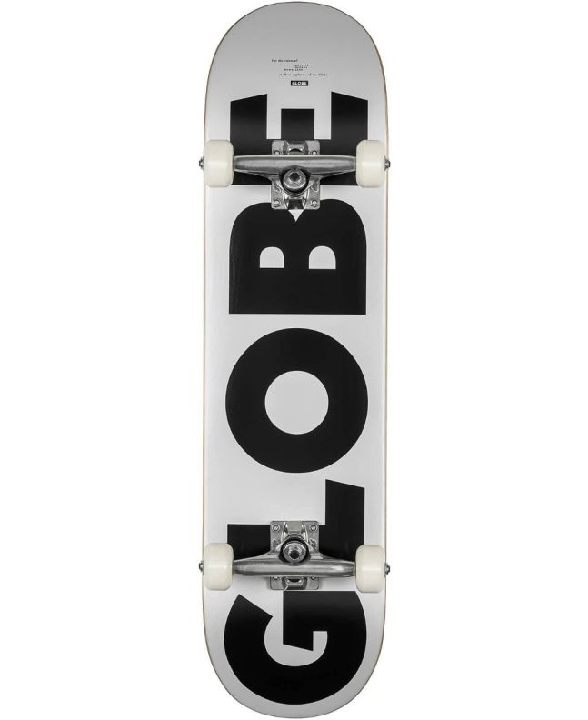 Este skate completo de cóncavo suave y kick profundo cuenta con ejes garantizados de por vida Slant de de 5.25 pulgadas de color plata con la base negra con pivote hueco, rodamientos Globe ABEC-7 que giran más rápido y durante más tiempo, lo que se traduce en menos esfuerzo y más rapidez, y ruedas de 52 mm de diámetro y dureza 99A fabricadas con uretano high-rebound de Globe, resistentes a la abrasión, más suaves, más rápidas y con un excelente agarre.