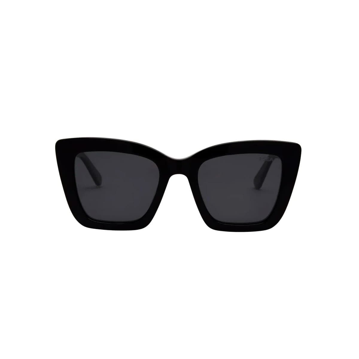 Gafas de sol polarizadas para mujer con montura negra de gran tamaño y lentes oscuras. Protección total y estética potente firmada por I-SEA.
