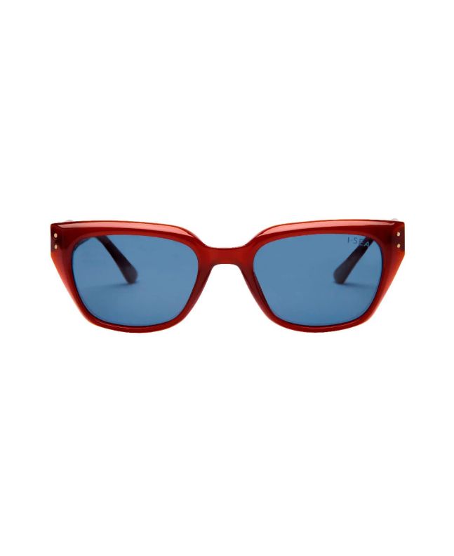 Diseño envolvente, acabado rojo jengibre y lentes polarizadas azul cielo: las gafas I-SEA Nova combinan protección y personalidad para tus días al sol.