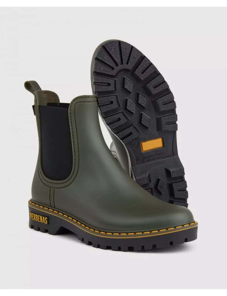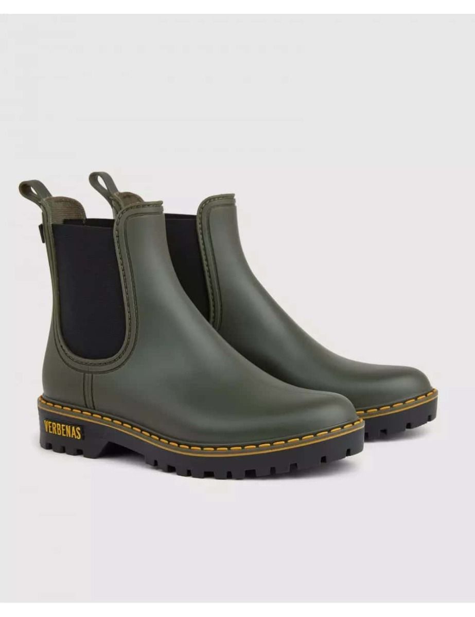 Los botines de lluvia Gaudí Countryside en tono kaki para mujer de Verbenas están confeccionadas con fibra sintética, forro y planta textil junto con suela de goma.