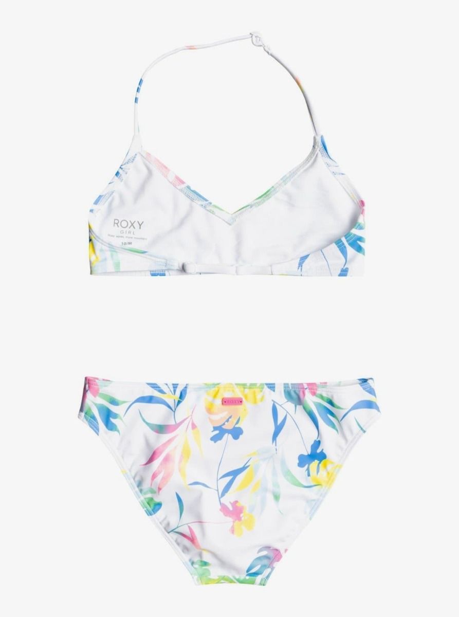 El conjunto de bikini triangular Good Romance blanco floral para chicas de entre 8 y 16 años tiene el sello de garantía Roxy en el interior.