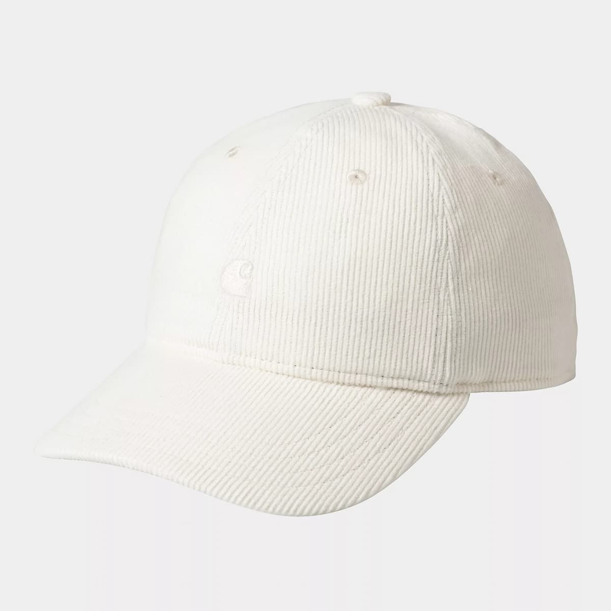 La Carhartt WIP Harlem Cap en color Wax es una gorra de pana blanca con logo bordado tonal, visera curva y cierre metálico ajustable. Urbana, neutra y con carácter.