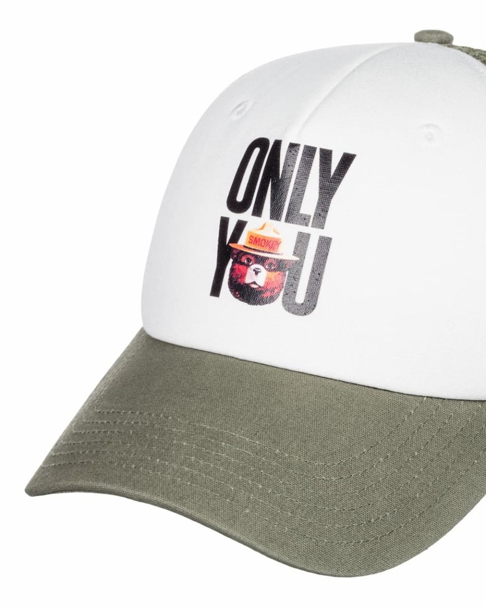 Esta clásica gorra de estilo camionero pertenece a la colección Smokey Bear de Element, la cual está protagonizada por el icónico oso de las campañas de prevención de incendios en Estados Unidos.
