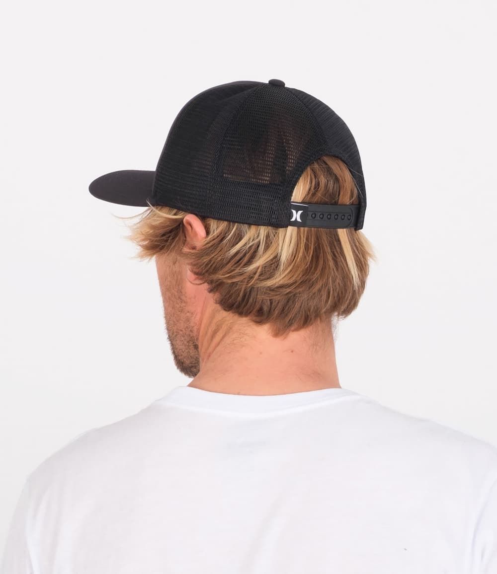 Esta gorra de estilo camionero cuenta con borde redondo estructurado, banda H2O-Dri que absorbe el sudor, paneles laterales y traseros de malla elástica, cierre ajustable posterior a presión de plástico y una etiqueta HD de Hurley bordada en la parte delantera.