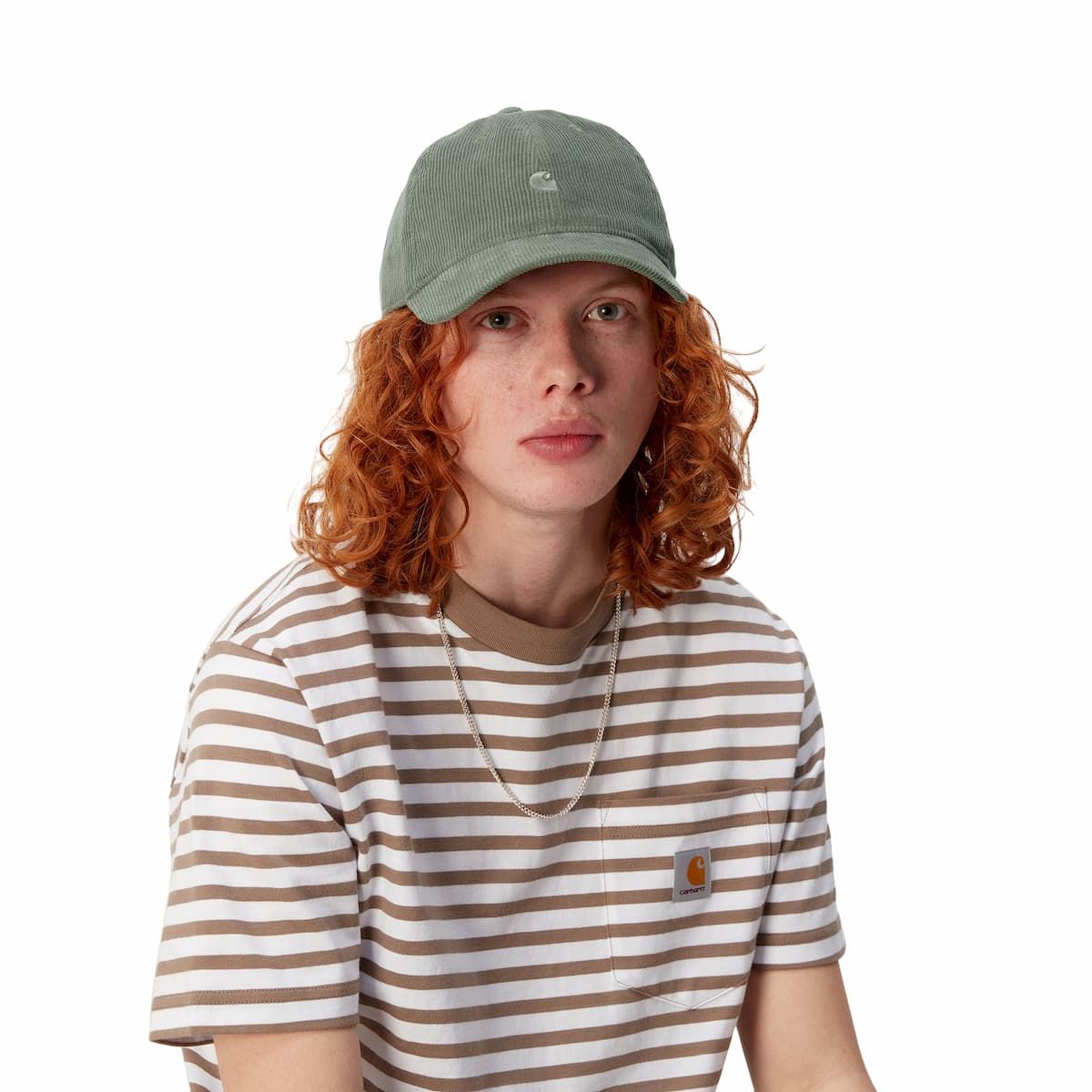 La gorra para hombre y mujer Harlem Cap en tono verde (Park) de Carhartt WIP está confeccionada con 100% pana de algodón de 12 wales (10,2 onzas).