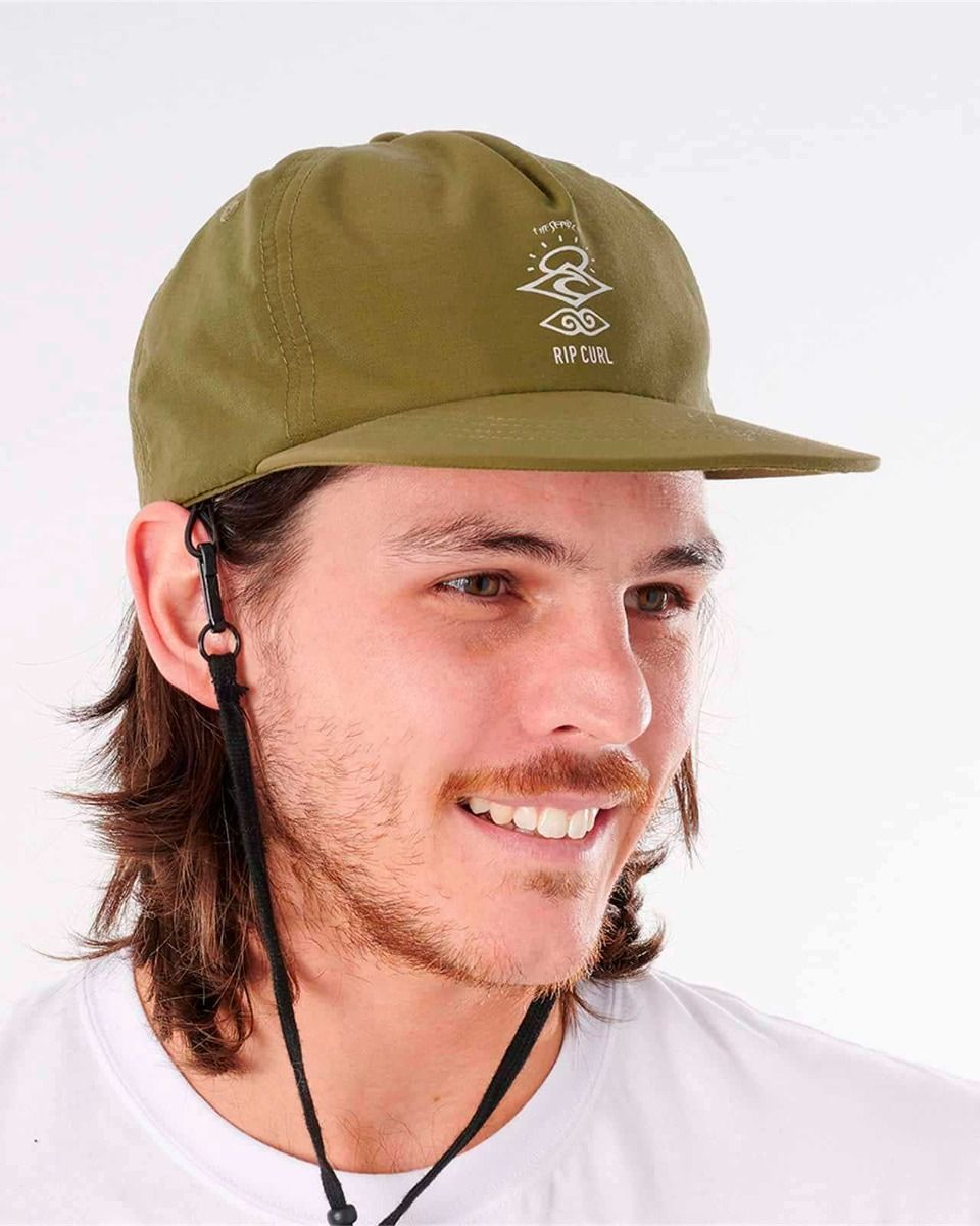 Esta gorra de perfil medio, con diseño estructurado y visera flotante flexible, cuenta con cierre ajustable con cordón en la barbilla, toggle, y el logo de Rip Curl bordado en contraste en el frente.