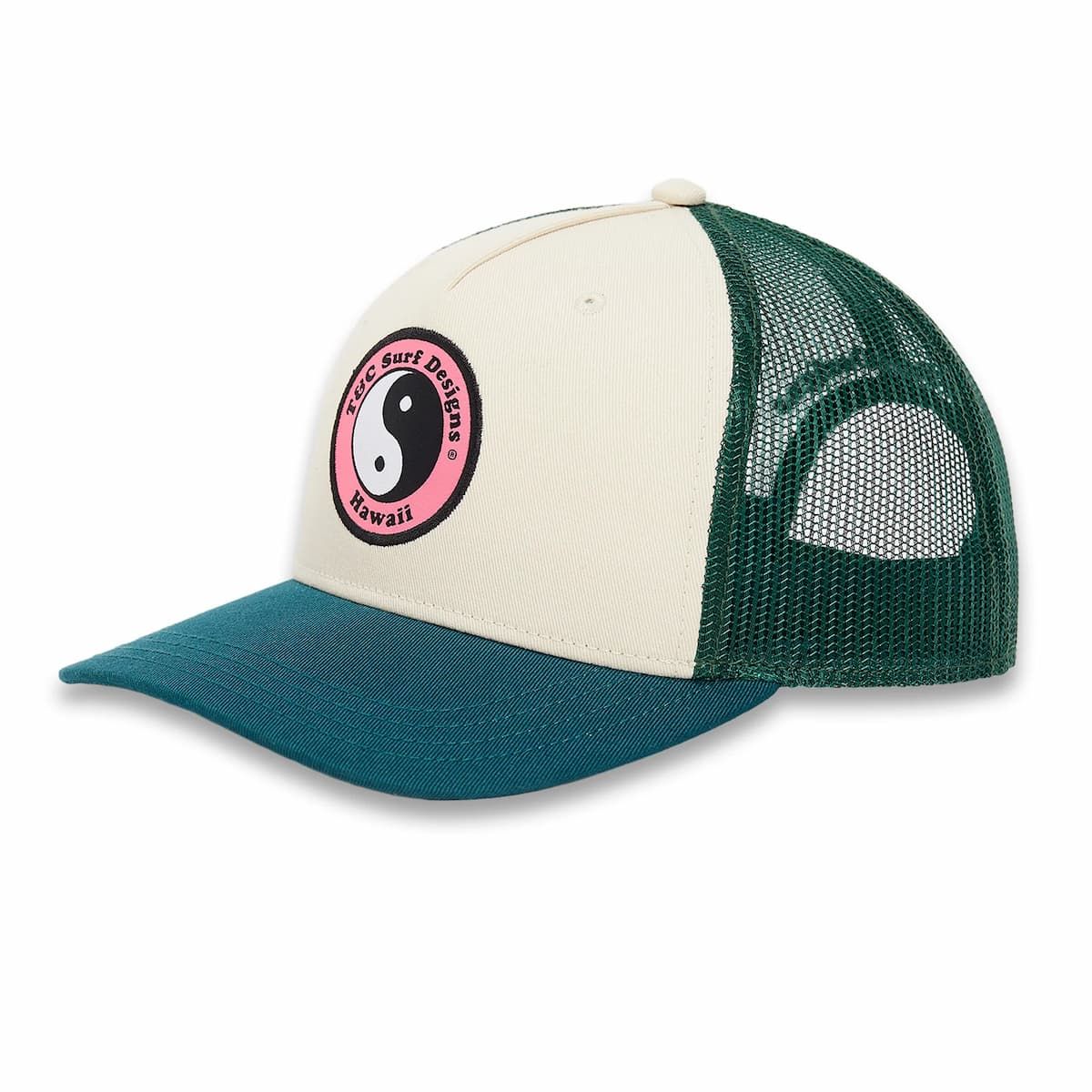 Gorra Trucker T&C Surf Designs Yin Yang Graen Sea Off White Pink Logo Unisex
