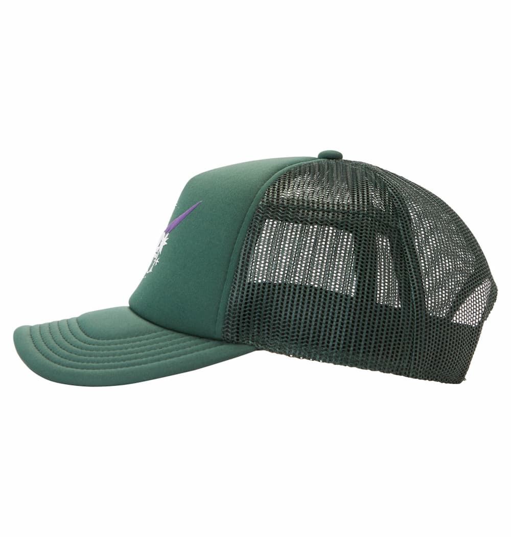 Esta gorra de estilo camionero, perteneciente a la Colección Skateboarding de DC Shoes, viene con construcción en 5 paneles, panel delantero de espuma, paneles laterales y posteriores de malla verde para mayor transpirabilidad, visera semi-curvada, cierre posterior ajustable a presión de plástico y una impresión DC Shoe Co. en el panel delantero.