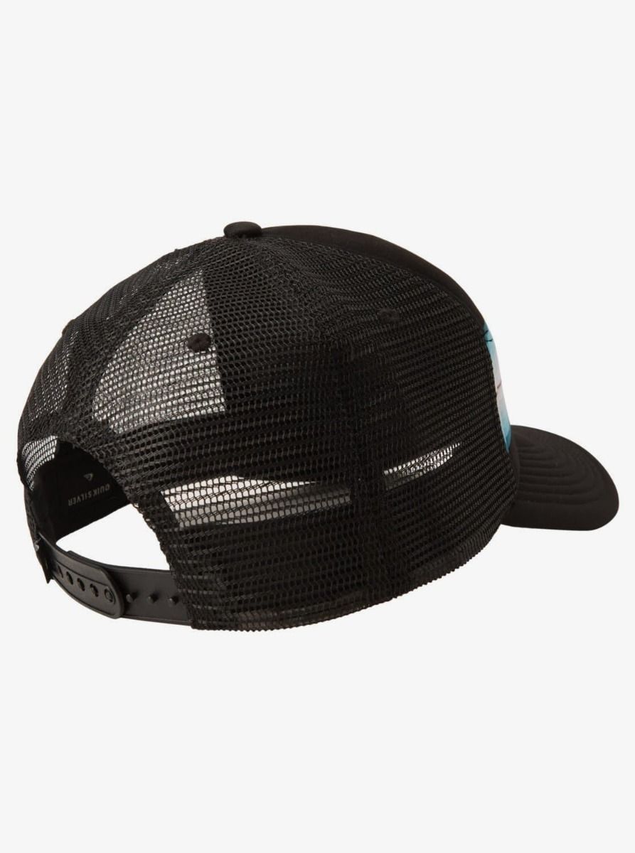 Esta gorra clásica de estilo camionero diseñada en 5 paneles cuenta con panel frontal de espuma, paneles laterales y traseros de malla, visera semicurva, cierre posterior ajustable a presión de plástico, bordado plano en la zona delantera y detalles artísticos sublimados junto con una etiqueta de Quiksilver en el panel frontal.