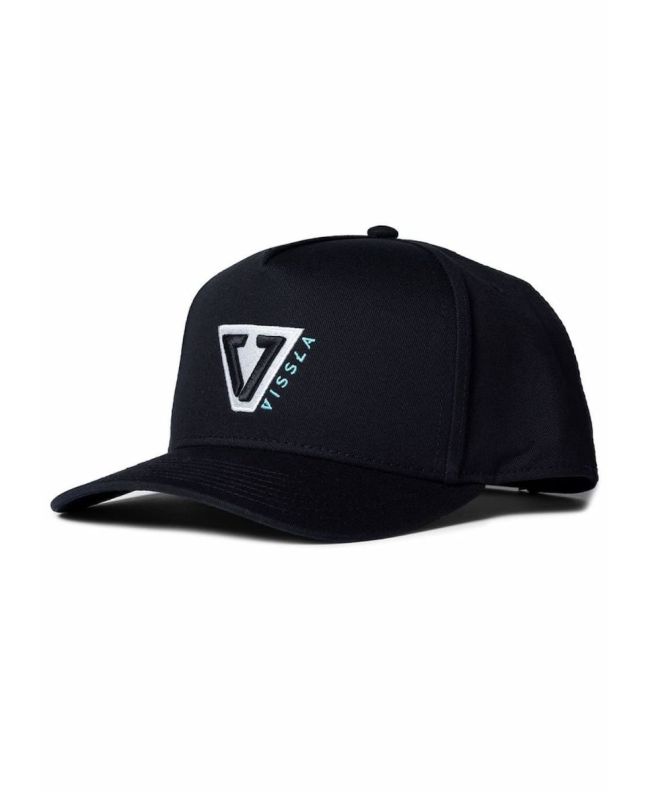 Gorra de 5 paneles en algodón 100% con logotipo bordado, cierre a presión y detalles personalizados. Diseño Vissla original en color Phantom.