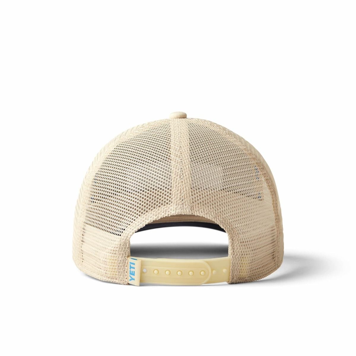 La gorra Logo Badge Trucker Hat tiene una etiqueta de garantía Yeti cosida en el cierre.
