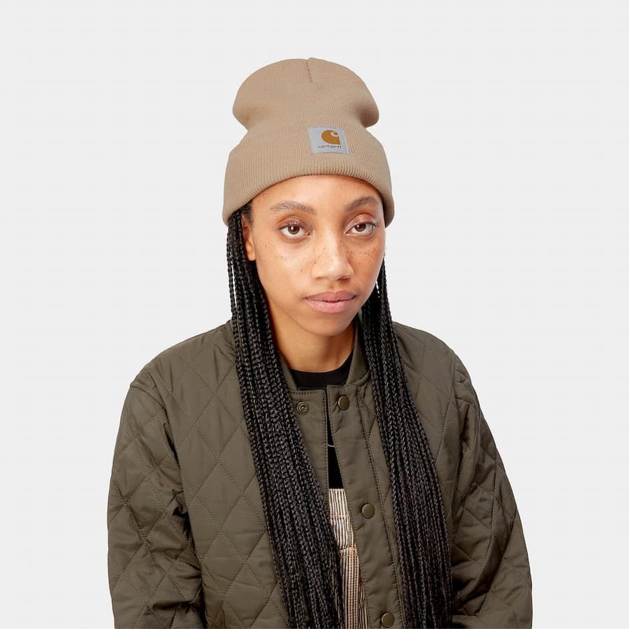 Este cálido beanie de Carhartt WIP presenta un diseño basado en el clásico Acrylic Watch, puño vuelto, tejido suave en canalé elástico para mayor comodidad y un mejor ajuste, una altura de 21cm y una etiqueta cuadrada con el logo de Carhartt tejida en el puño.