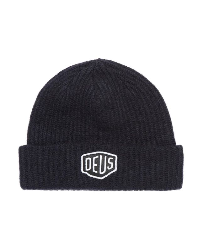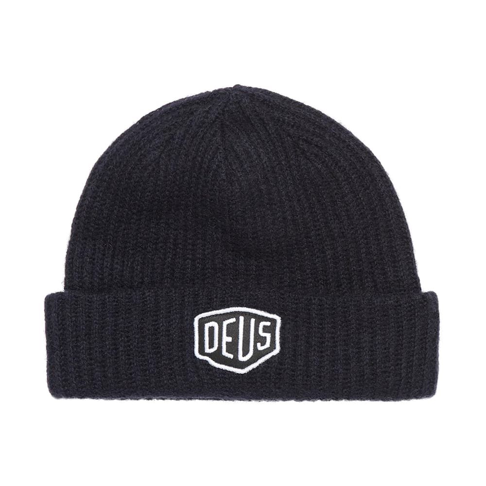 Este cálido beanie cuenta con tejido de punto, puño vuelto y un parche con el logo de DEUS tejido en el puño.