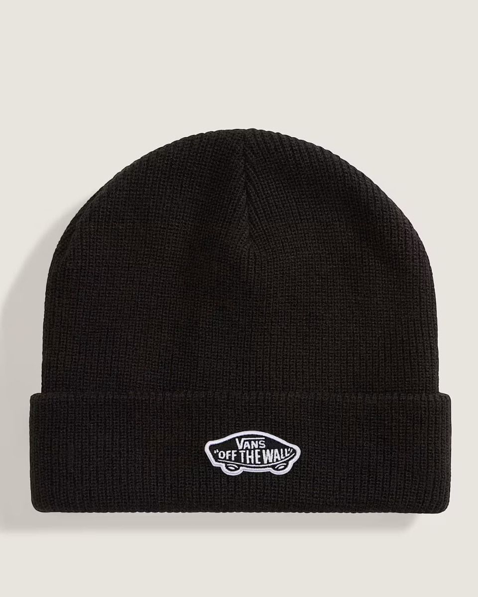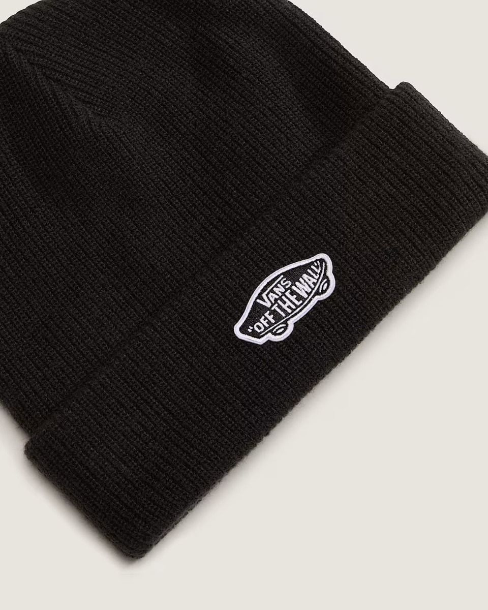 Gorro Vans Classic Cuff Beanie negro con punto acrílico suave, borde vuelto y logo Vans. Cálido, cómodo y esencial para el invierno.