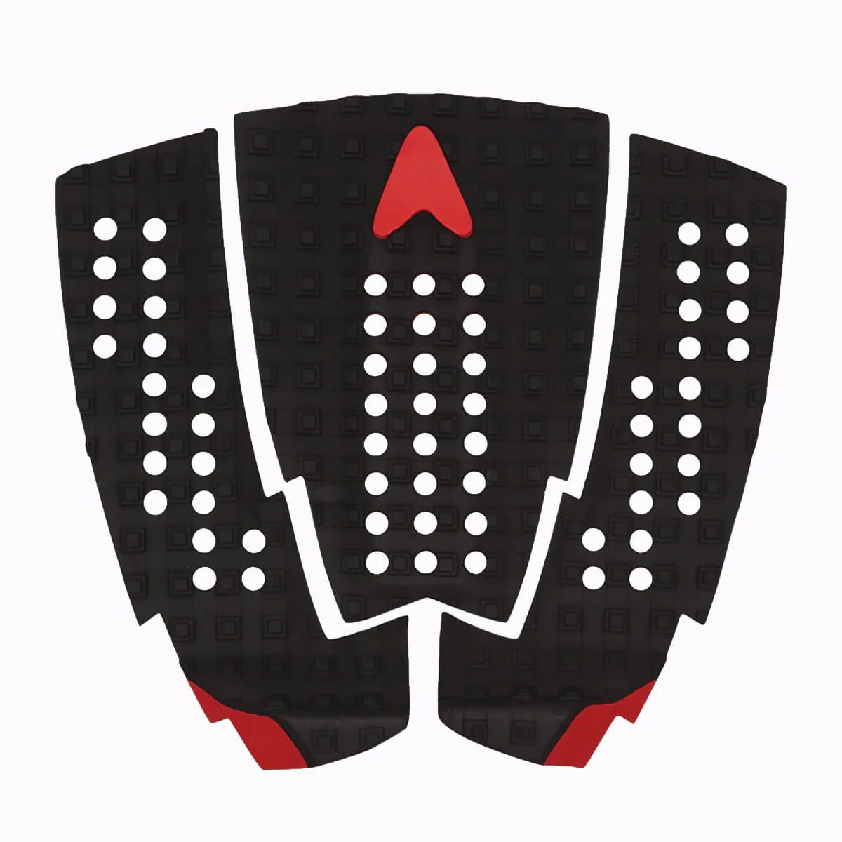 Grip para tabla de surf Astrodeck Christian Fletcher Built-In Arch en color negro y rojo - Tail Pad 3 piezas