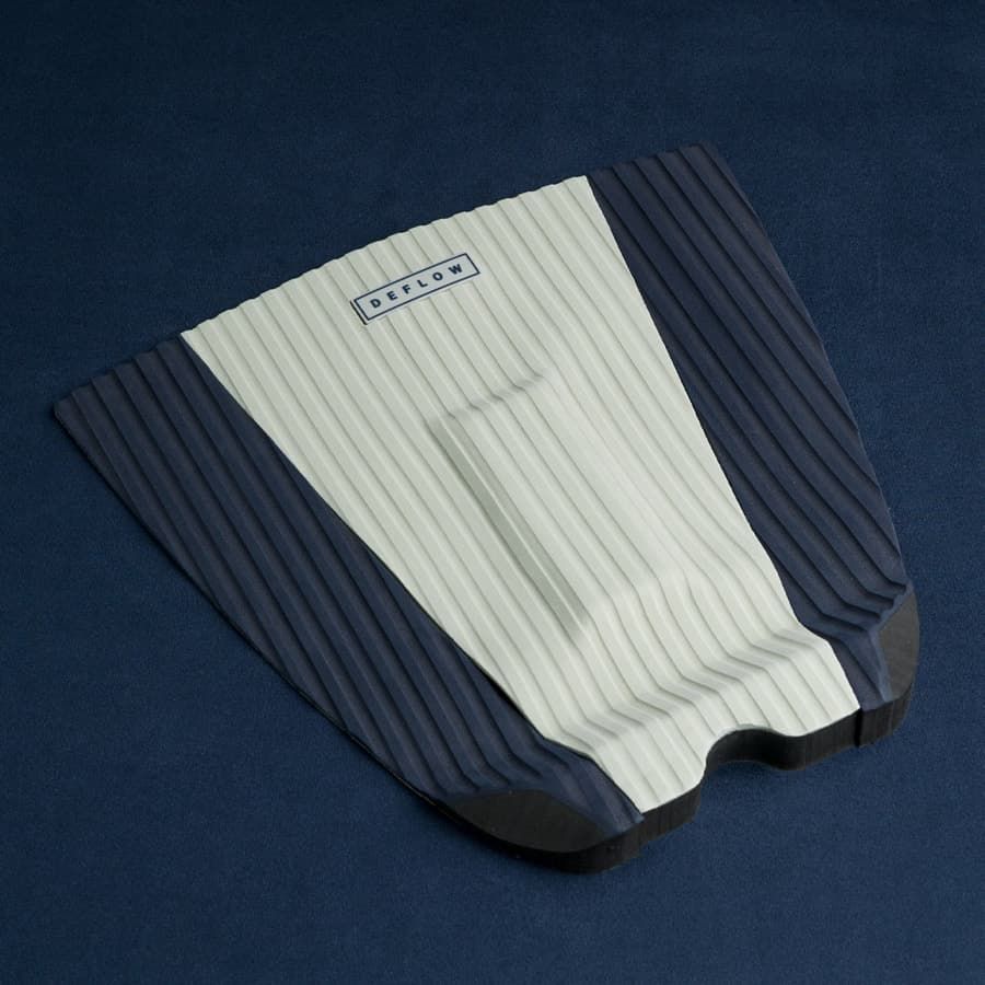 El grip para tablas de surf Adrien Toyon beige y azul tiene el logo de Deflow grabado.
