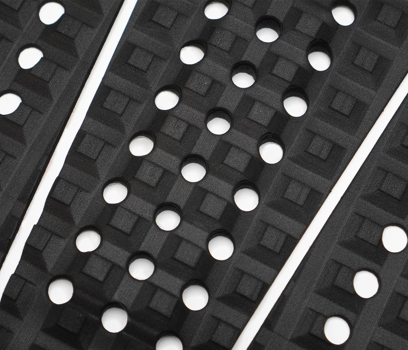 Su diseño en tres piezas permite un ajuste personalizado al shape de tu tabla, mientras que la barra de arco central de 7 mm eleva el puente plantar para mejorar el soporte del pie trasero. El patrón de tracción Grid garantiza un agarre firme sin comprometer el confort, incluso en sesiones largas.