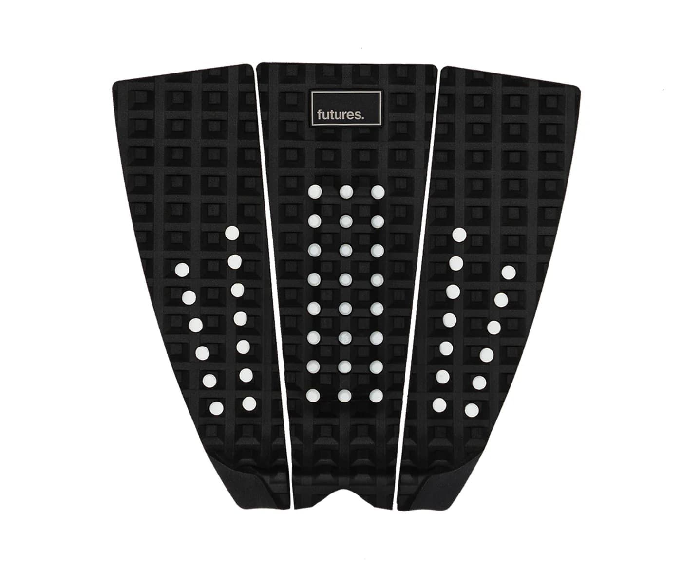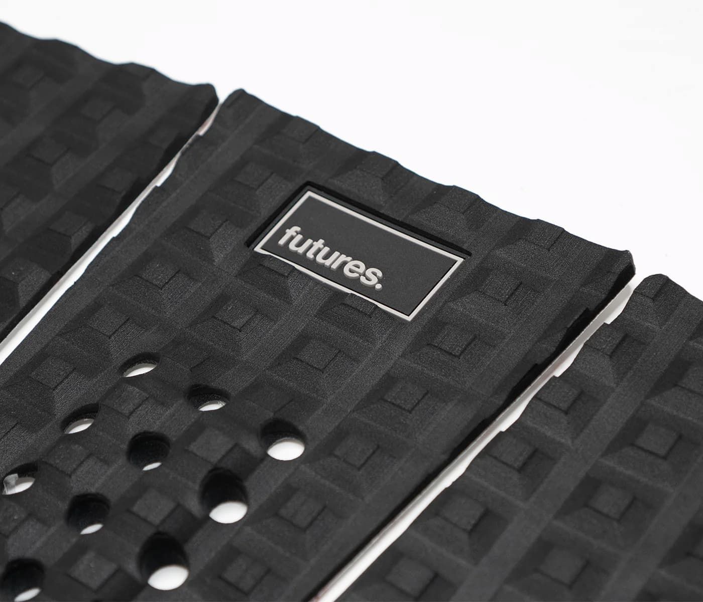 El Futures Brewster Narrow Tail Pad color negro (Black) de 3 piezas es el grip ideal para tablas con colas más estrechas o metidas, como las pin tail, thumb tail o tablas tipo grom. Diseñado para ofrecer máxima tracción y control en configuraciones técnicas, este tail pad se adapta perfectamente a los shapes de alto rendimiento que requieren precisión en cada movimiento.