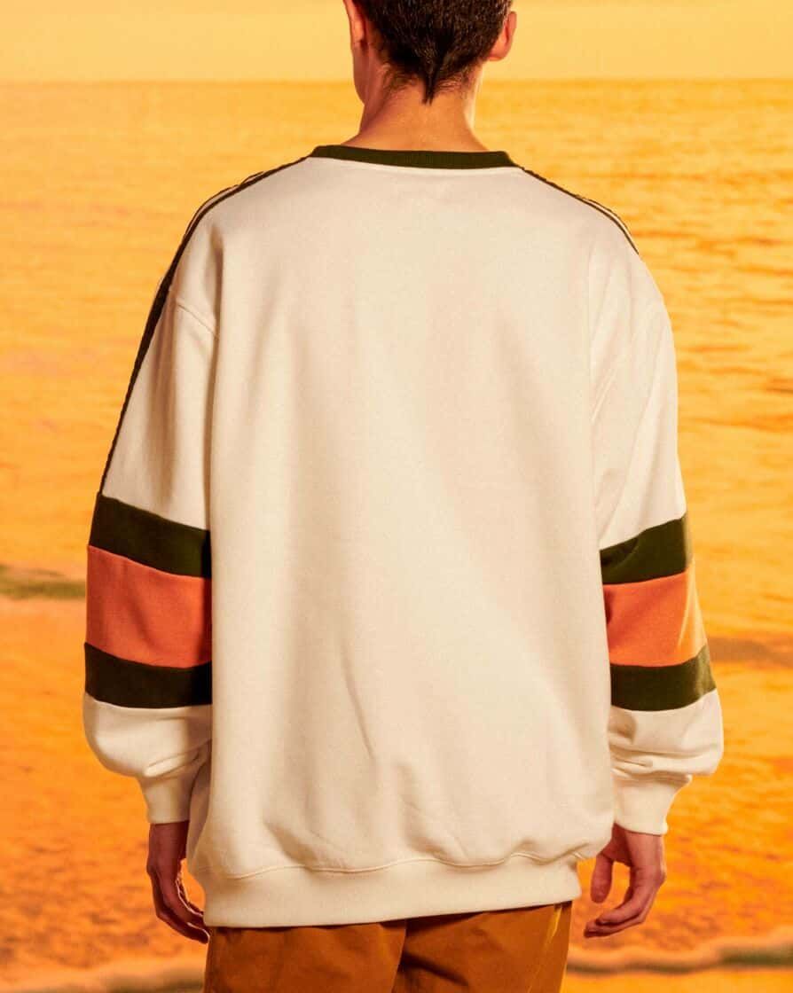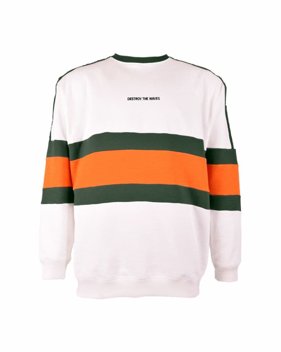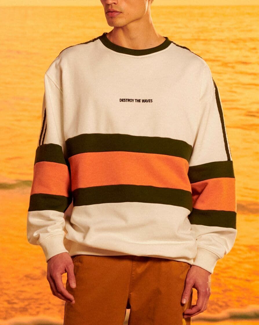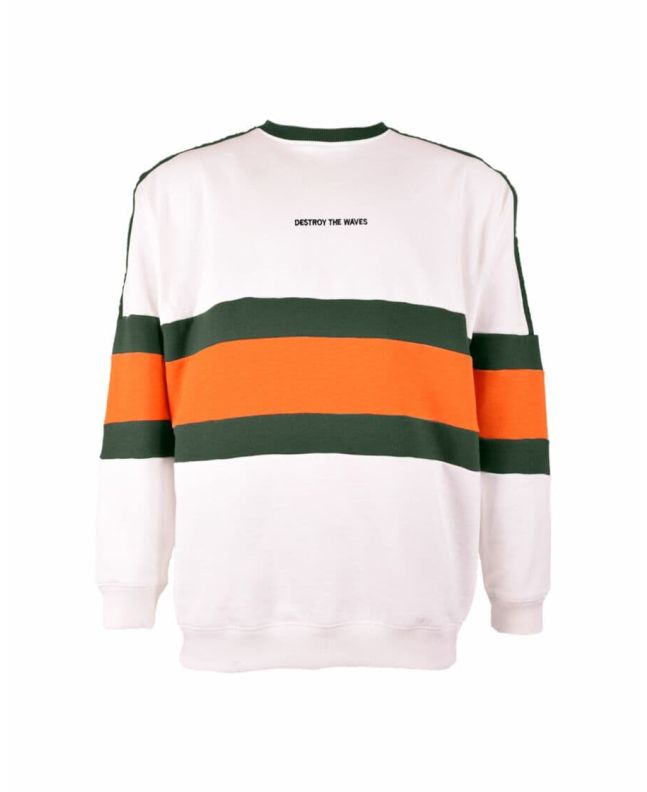 Esta crew de corte oversize cuenta con cuello redondo acanalado, punto canalé en puños y parte inferior, mangas raglán y bordado "Destroy the Waves" (Destroza las olas) bordado en el pecho.