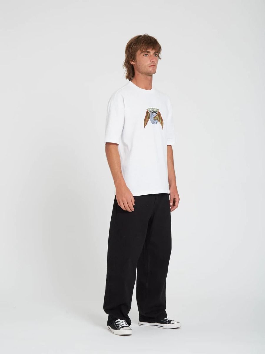 Esta camiseta de corte holgado cuenta con cuello redondo, manga corta y estampado serigrafiado original de Volcom en el pecho y la espalda.