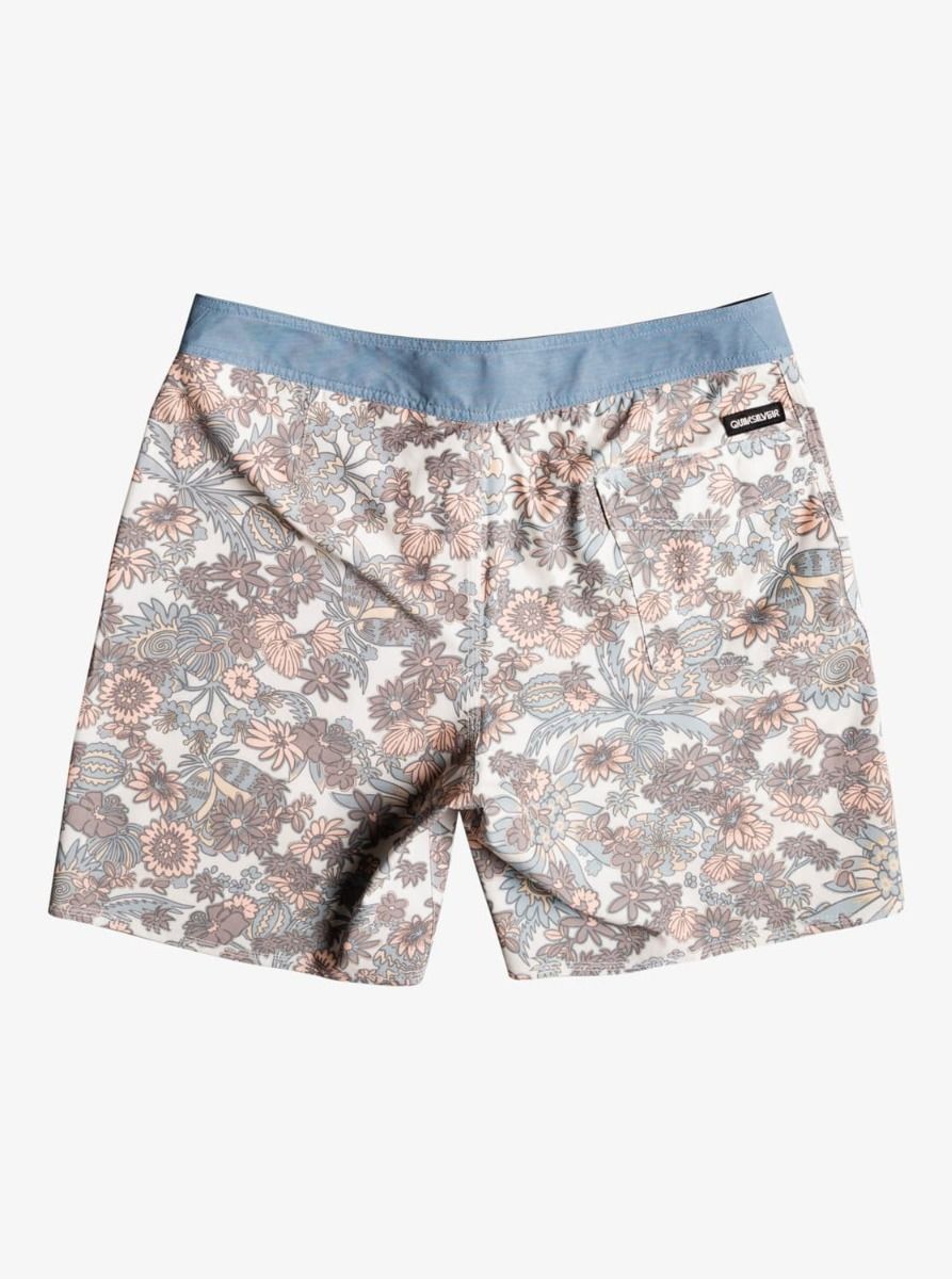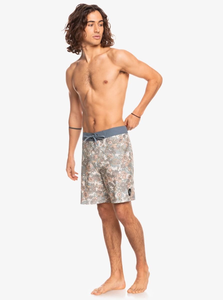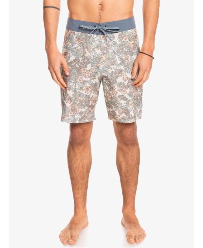Este boardshort de longitud 18" cuenta con tejido elástico en 4 direcciones, recubrimiento hidrofóbico DryFlight® a base de plantas que repele el agua, cordón de ajuste, bragueta performance, bolsillo trasero con solapa, cordón elástico para llaves en el interior del bolsillo, un parche con el logo de la ola y la montaña de Quiksilver cosido en la pierna izquierda y otro con el logo en texto en la zona posterior.