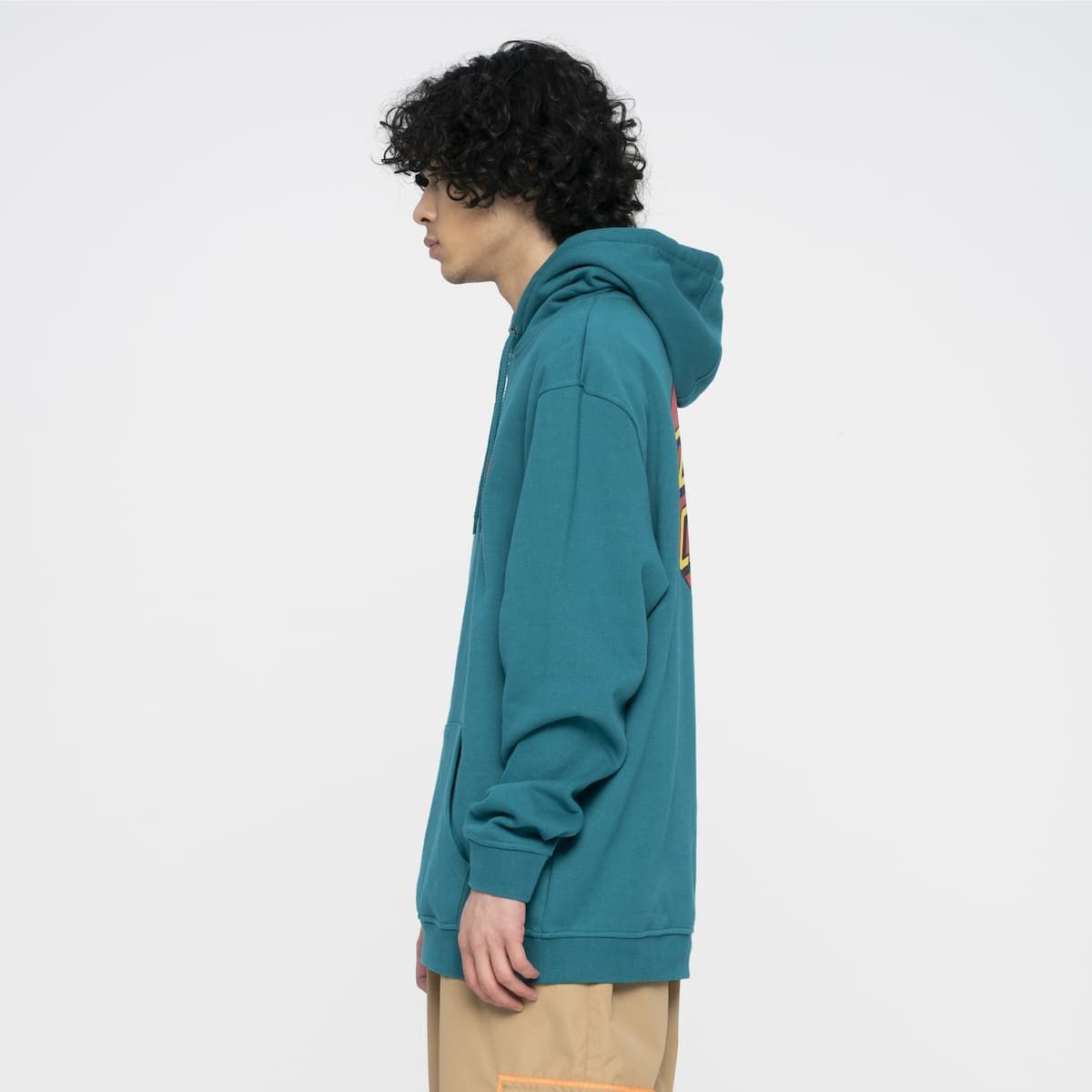 La sudadera con capucha para hombre Classic Dot Chest Hood en tono azul verdoso (Verdigris) de Santa Cruz está confeccionada con 80% de algodón y 20% poliéster.