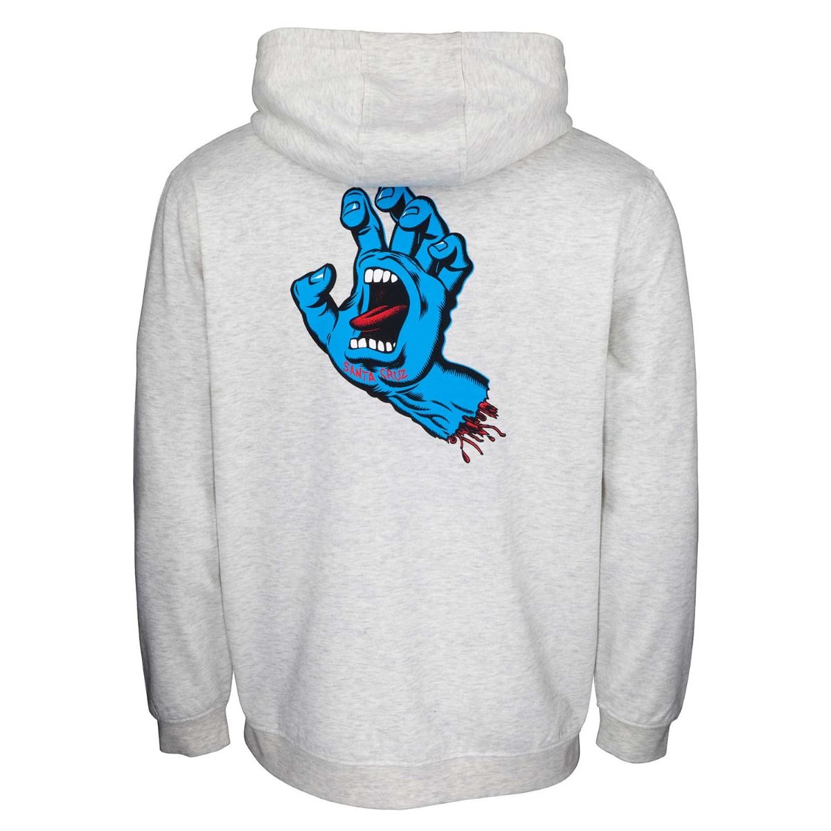 La sudadera con capucha para hombre Screaming Hand Chest Hood en gris (Athletic Heather) de Santa Cruz ha sido confeccionada con 80% de algodón y 20% poliéster.