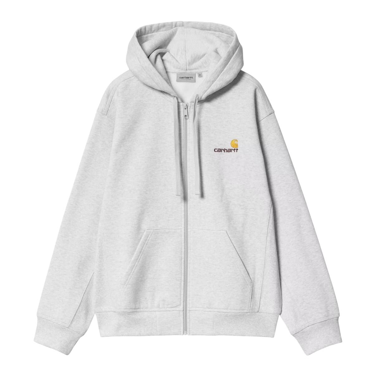Saca tu lado más urban con la Sudadera con capucha y cremallera Hooded American Script Jacket color Ash Heather de Carhartt WIP.