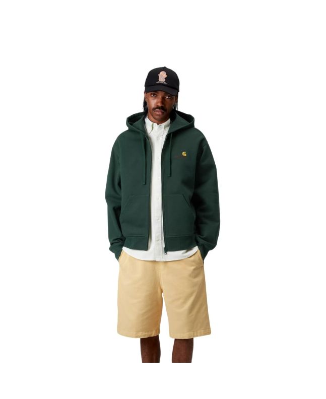 Saca tu lado más urban con la Sudadera con capucha y cremallera Hooded American Script Jacket color Conifer de Carhartt WIP.