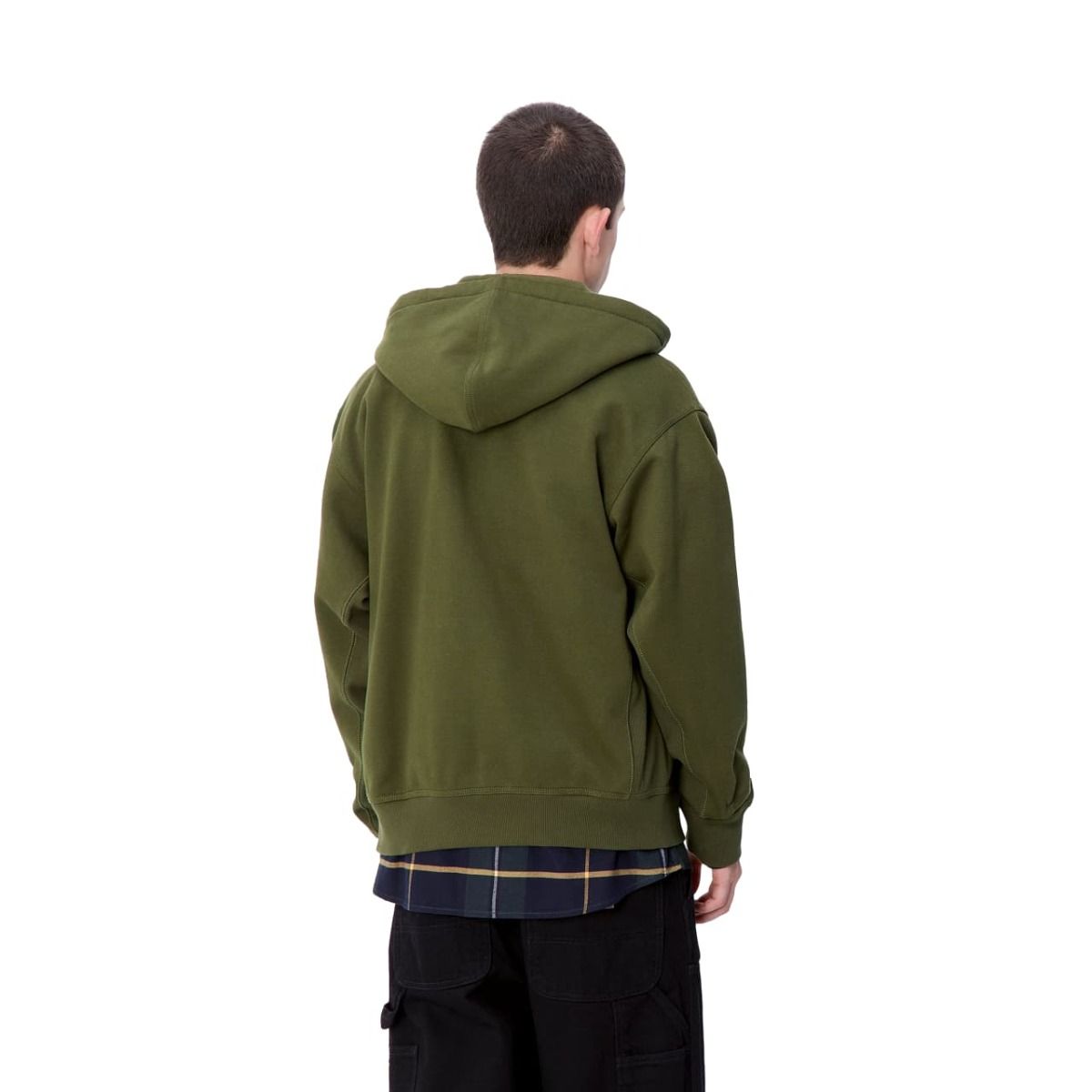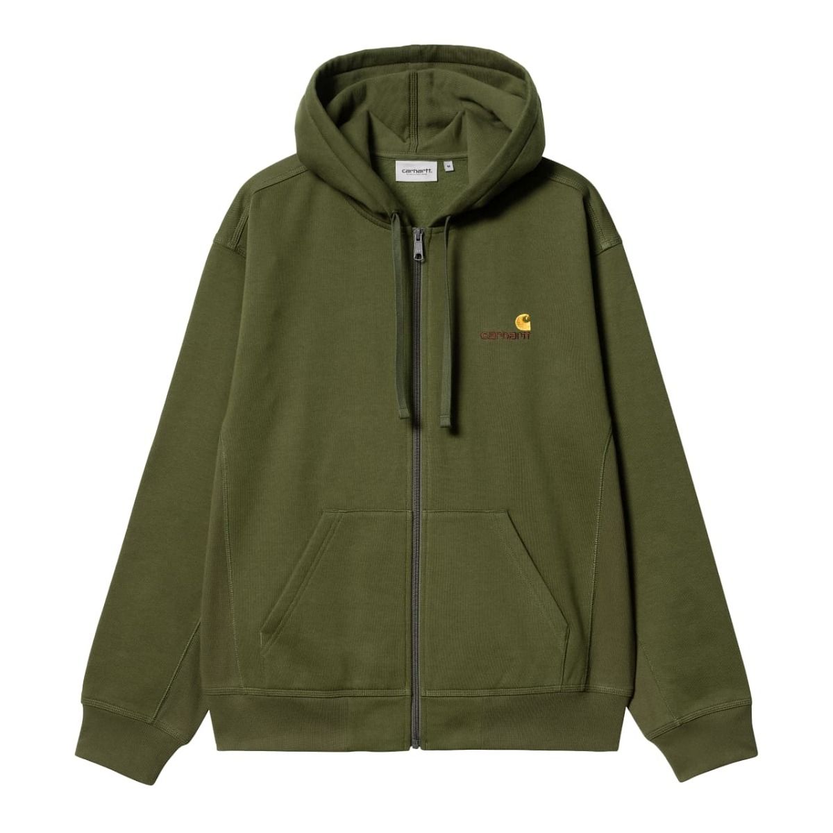 Saca tu lado más urban con la Sudadera con capucha y cremallera Hooded American Script Jacket color Tarragon de Carhartt WIP.