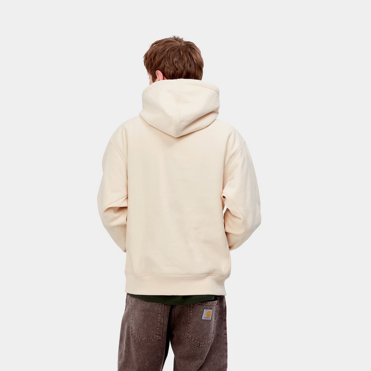 La sudadera con capucha para hombre American Script Sweat en tono blanco hueso (Calico) de Carhartt WIP está fabricada con 80% algodón y 20% poliéster (420g/sqm).
