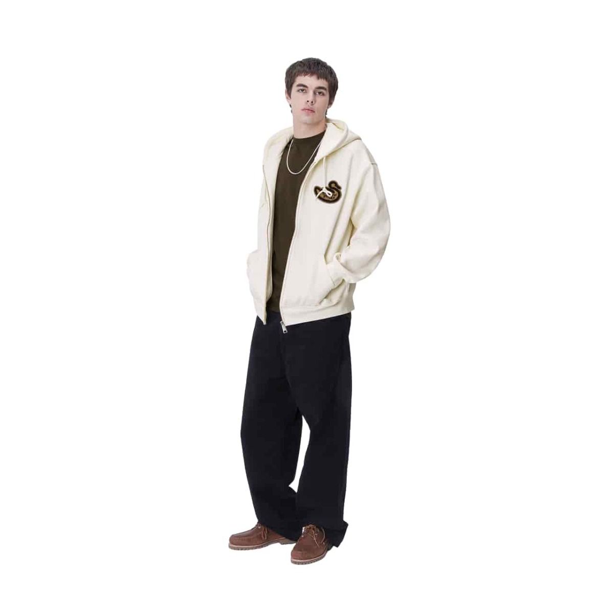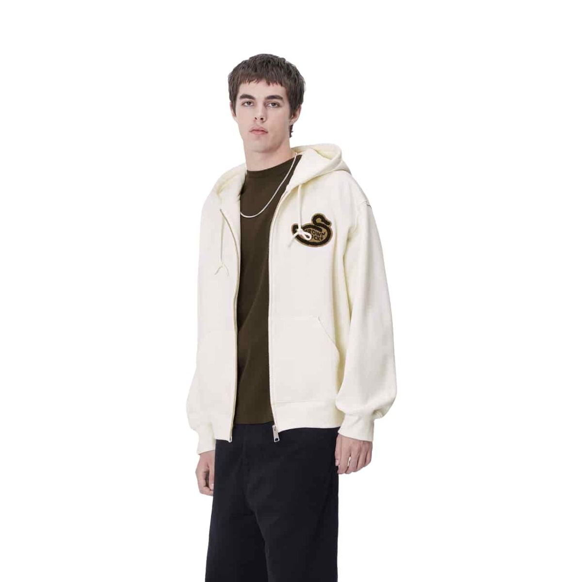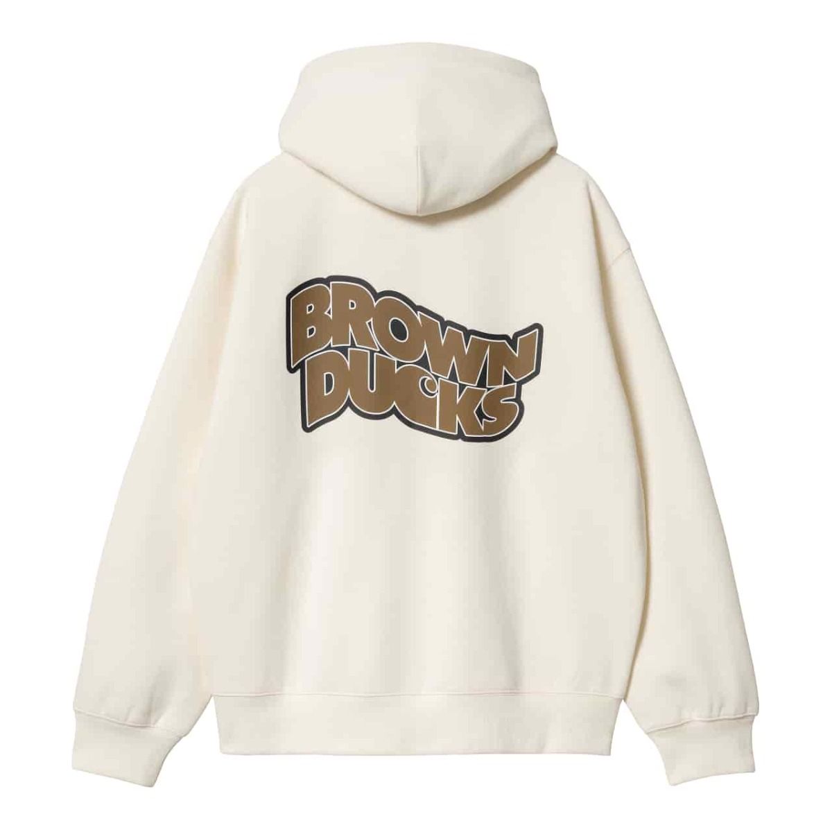 Esta sudadera con cremallera tipo chaqueta cuenta con corte “balloon”, que es un poco más holgado y cuadrado, hombros caídos, puños y bajo acanalados para un efecto ceñido, tejido cepillado para un acabado suave similar al forro polar, capucha ajustable mediante cordón, bolsillo tipo canguro, un parche de Brown Ducks bordado en el lado izquierdo del pecho y estampado Brown Ducks en la espalda.