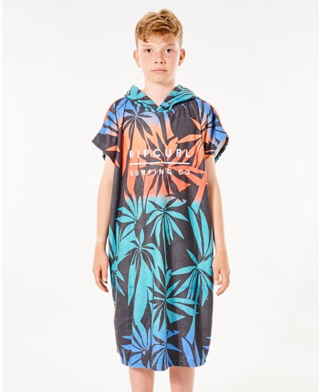 Este poncho de surf de ajuste generoso con un diseño de largo completo y manga corta, cuenta con capucha de algodón cálido y el logo de Rip Curl bordado en el frente.