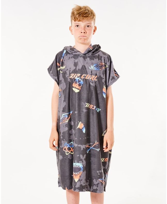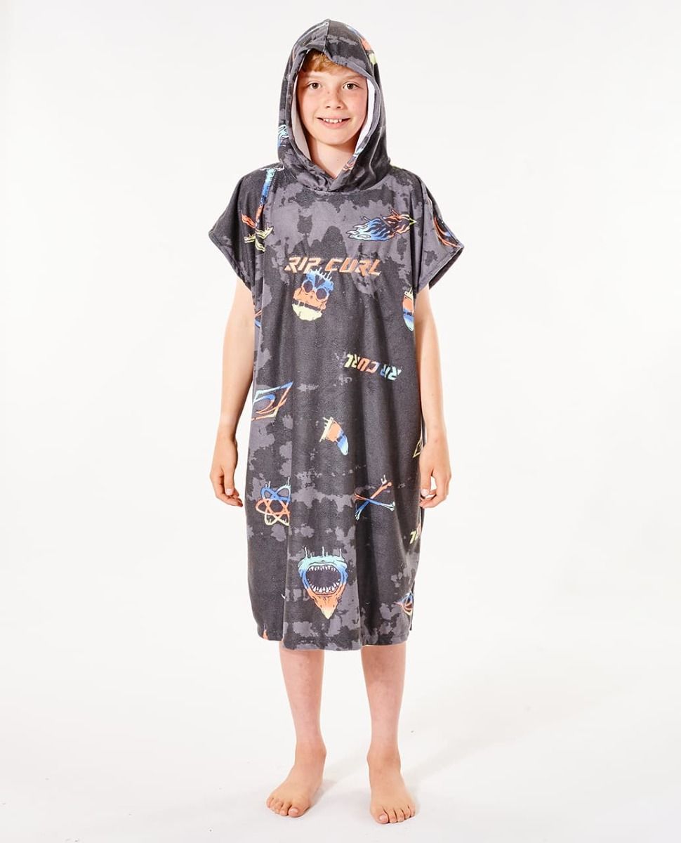 Poncho Surf Rip Curl Hooded Print Towel Boy Washed Black
